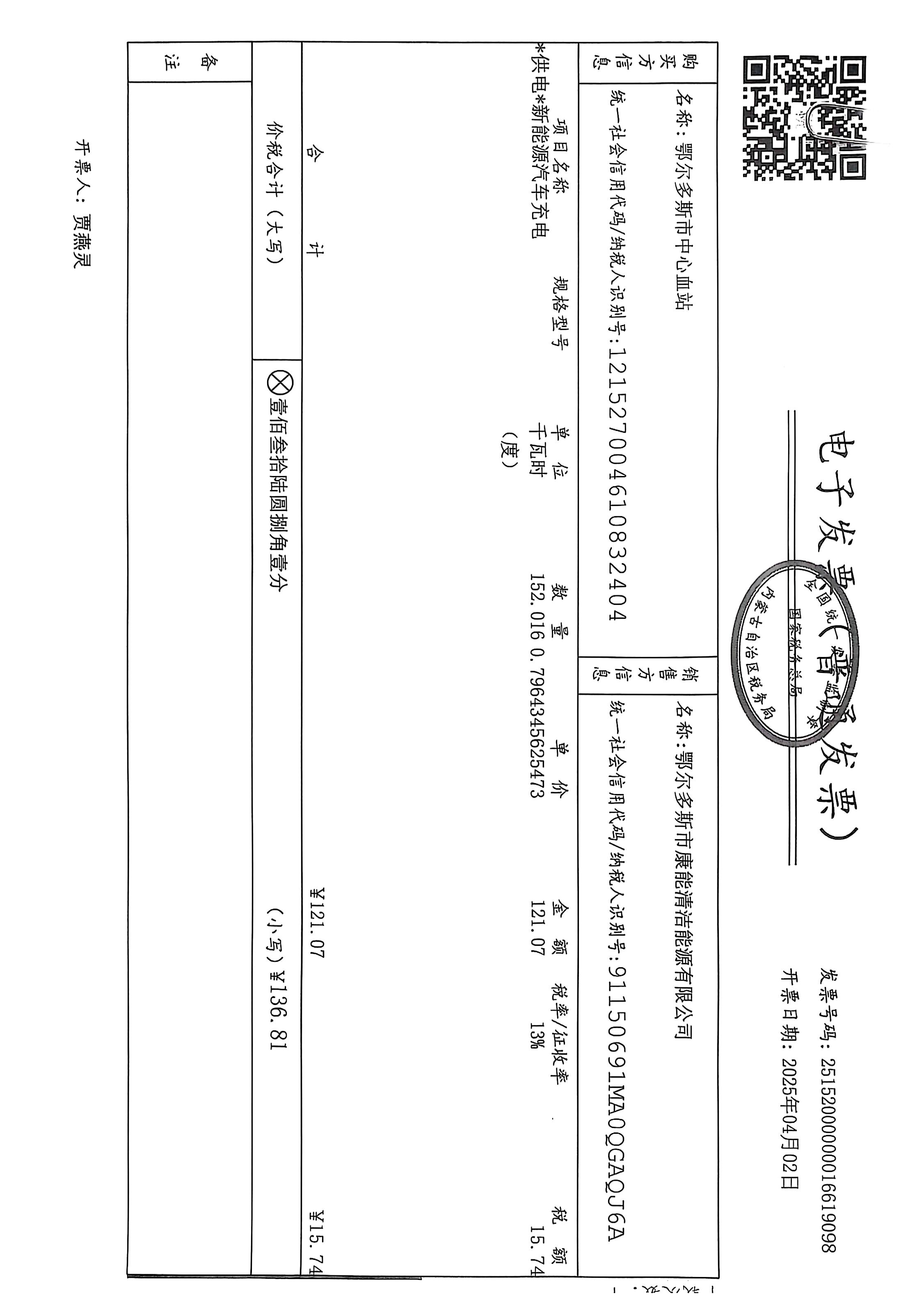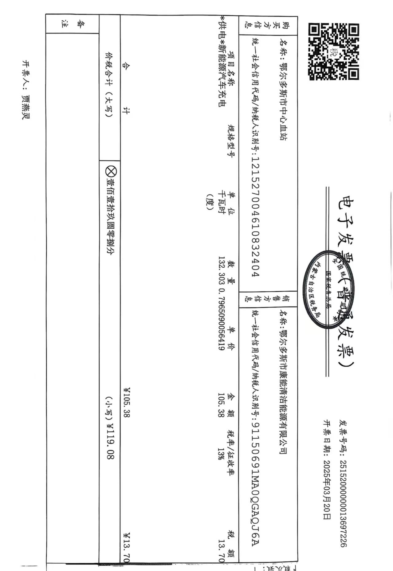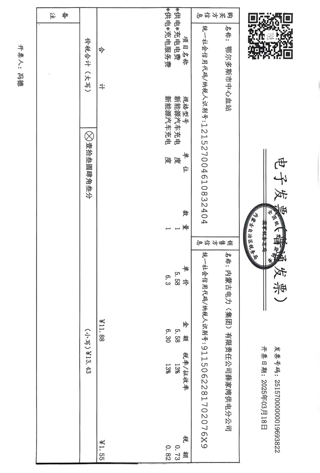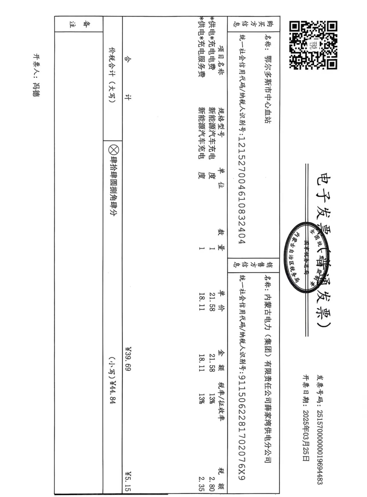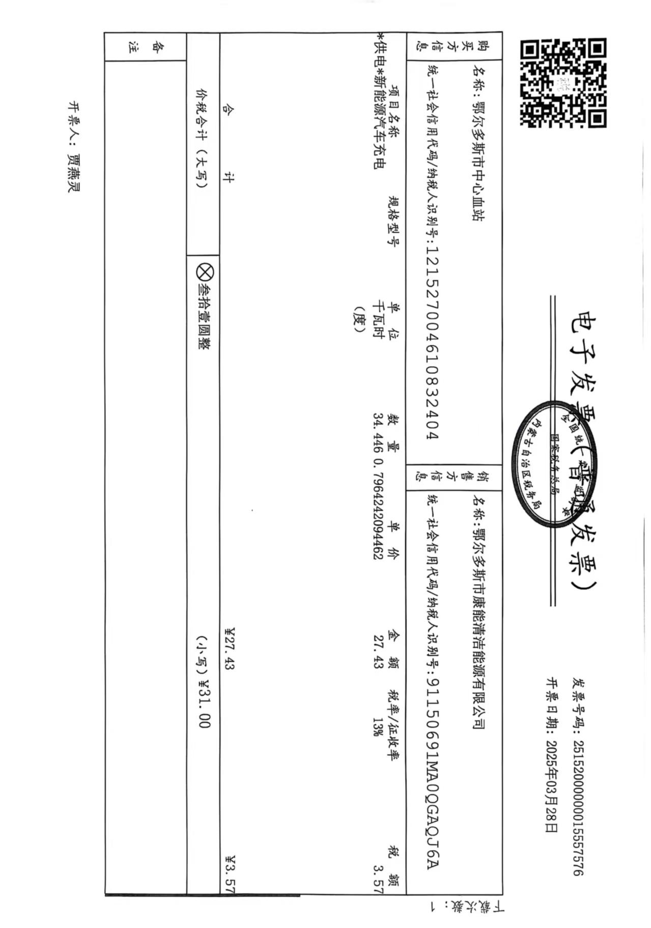 四、项目名称:鄂尔多斯市中心血站车辆三月用油用电