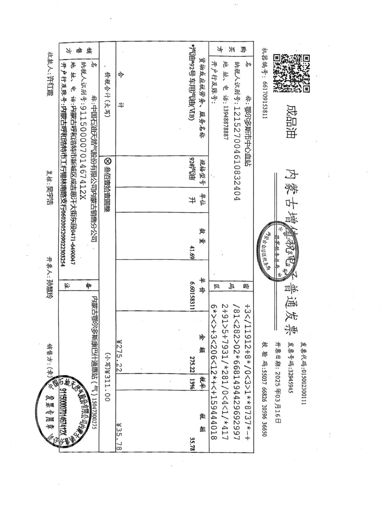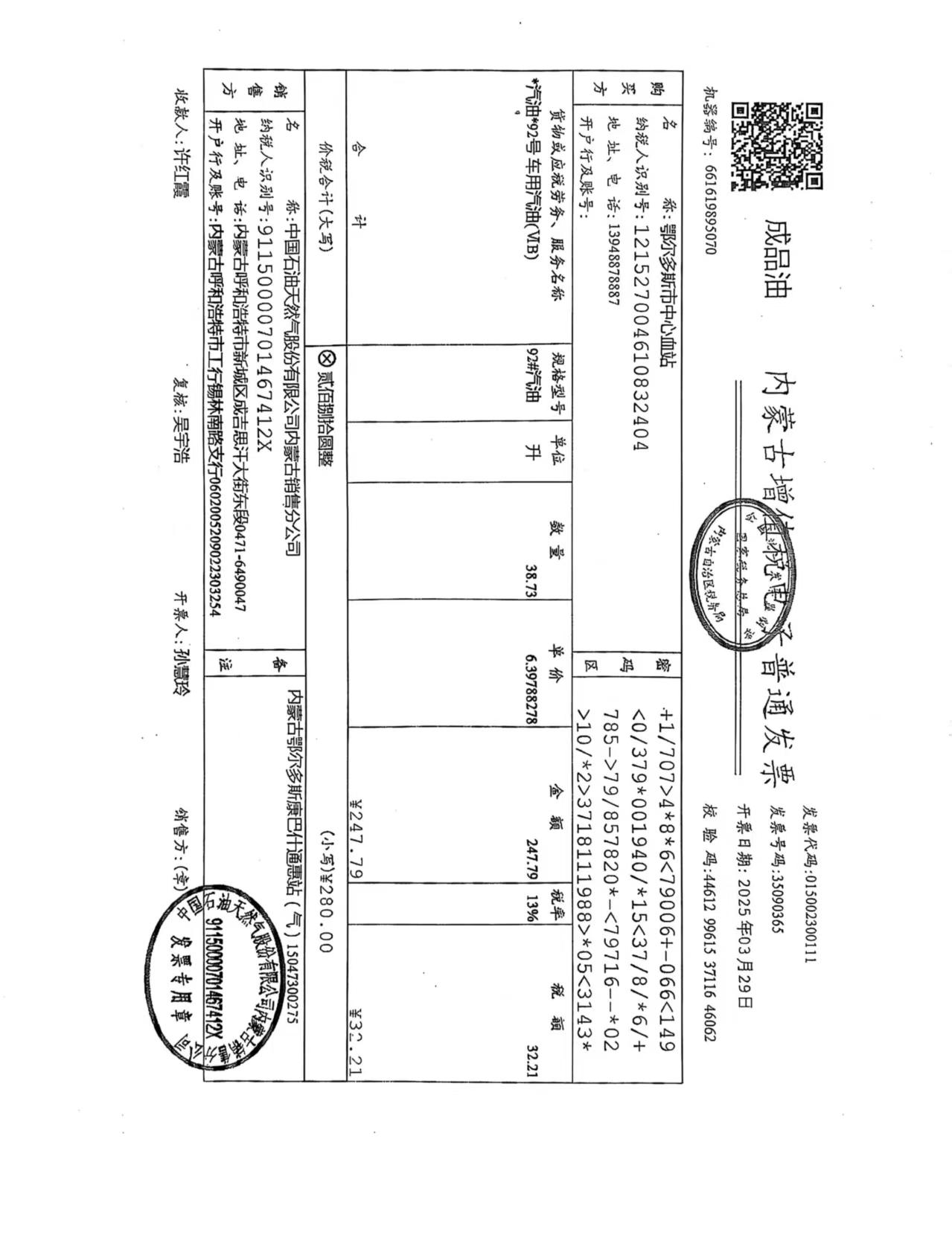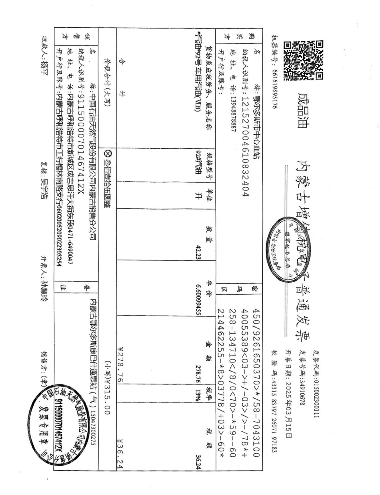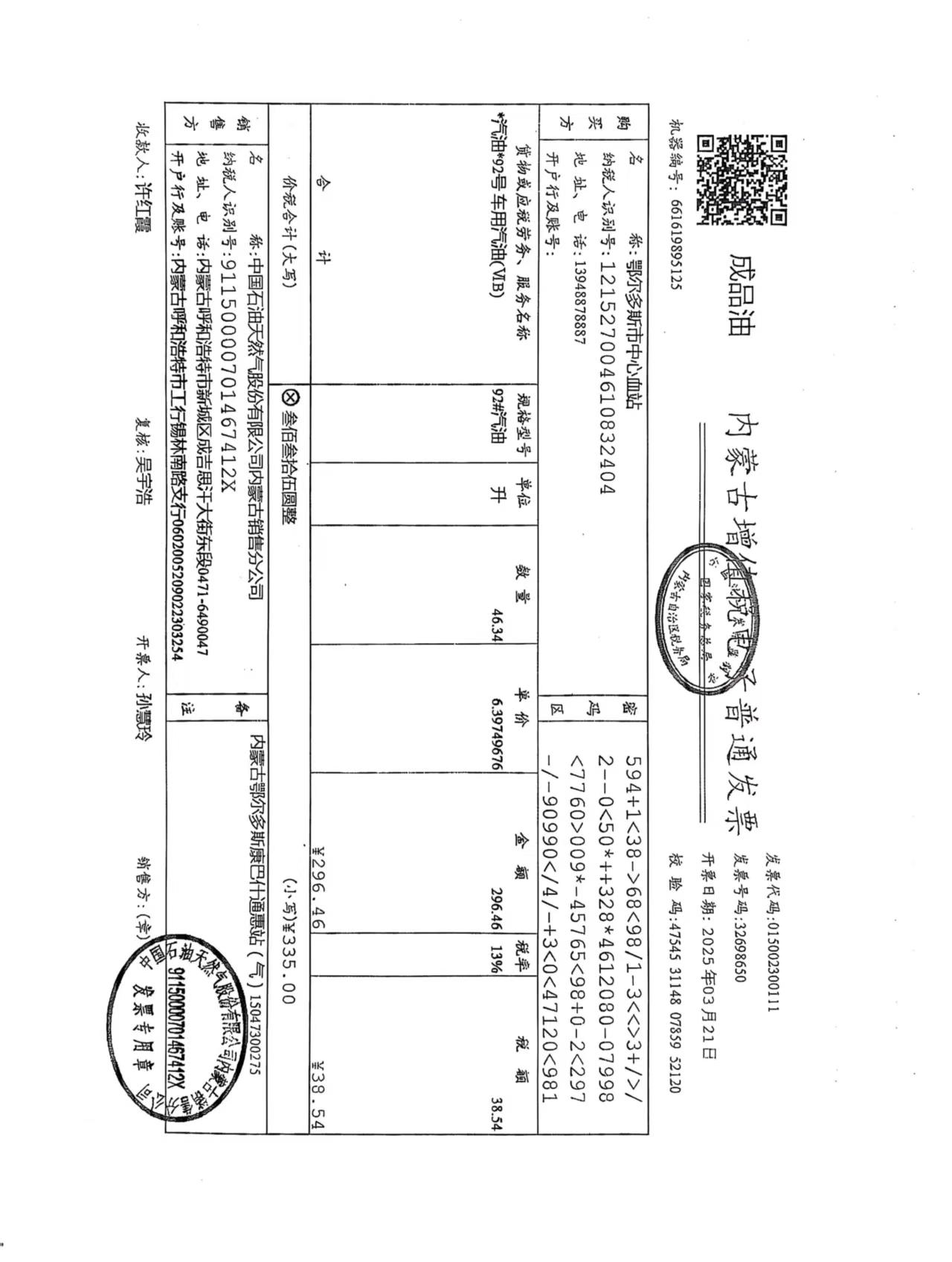蒙K93X59车辆三月用油 |
