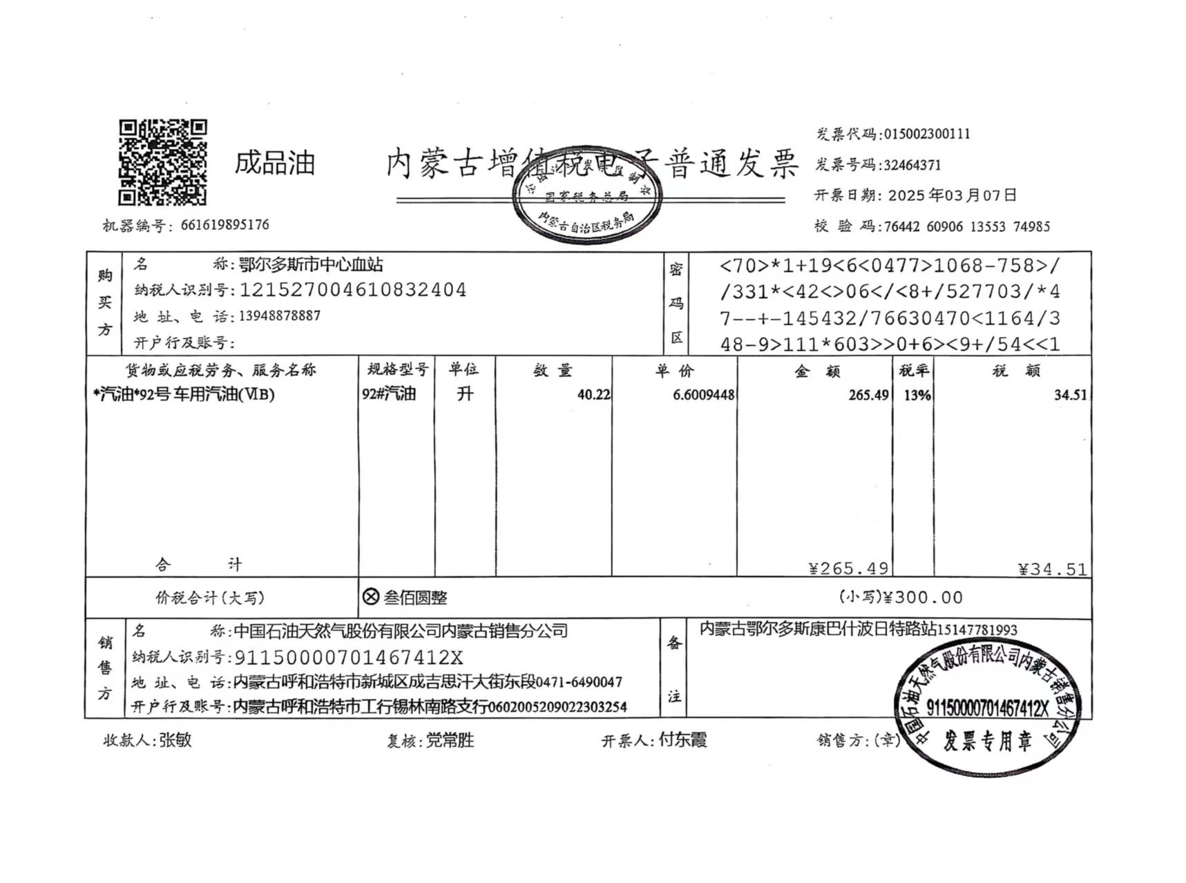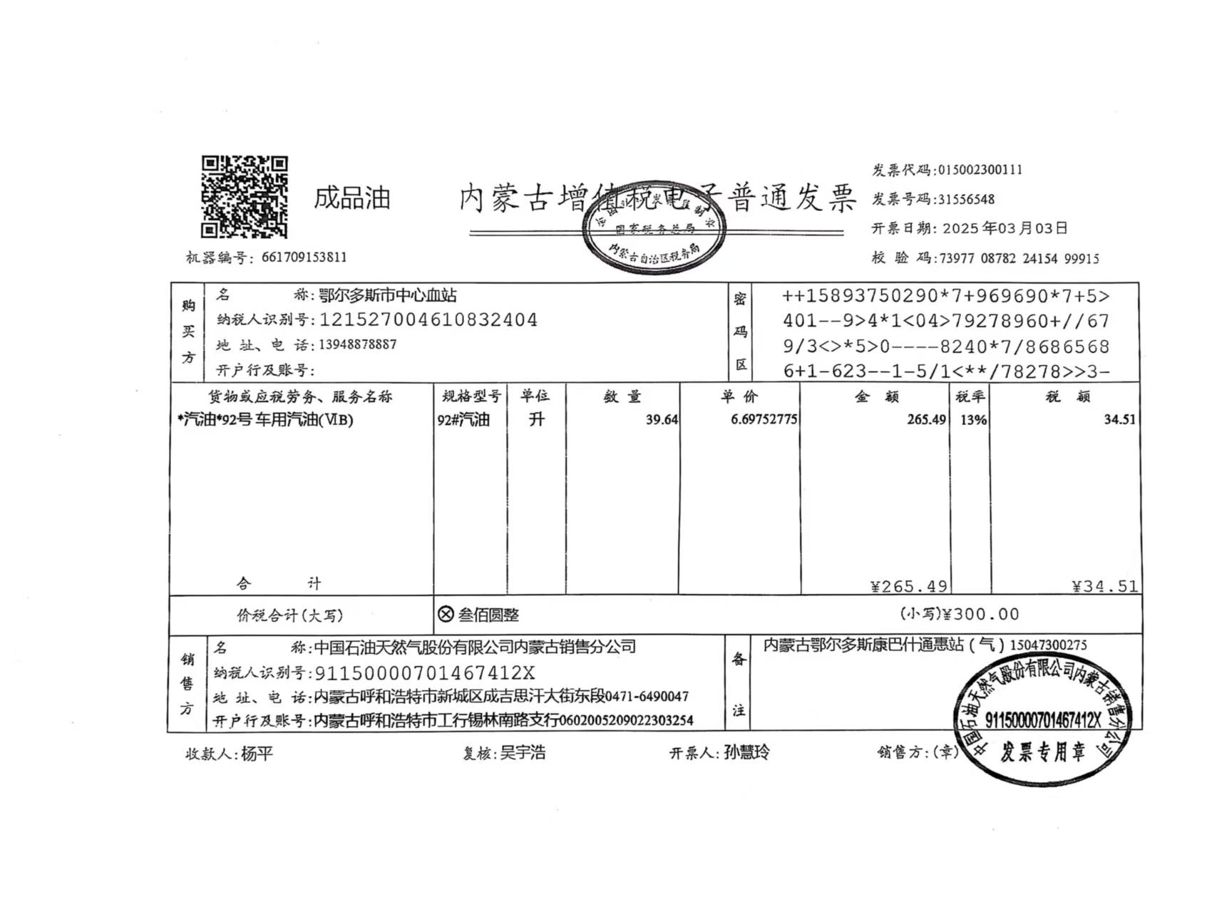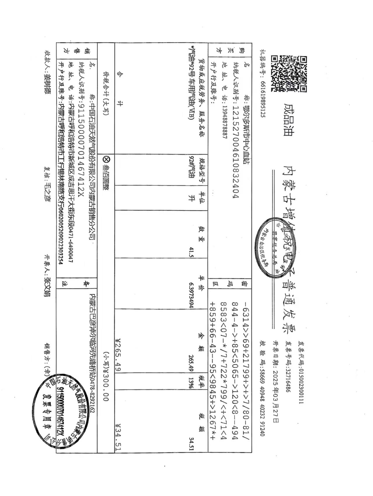 四、项目名称:鄂尔多斯市中心血站车辆三月用油用电