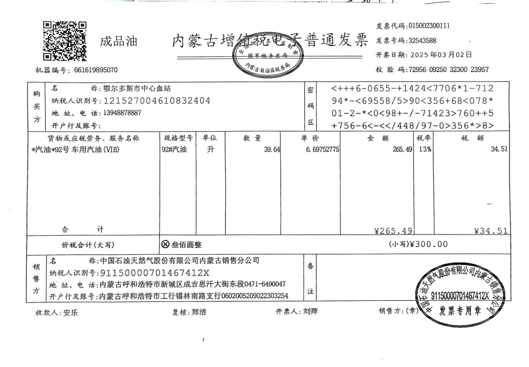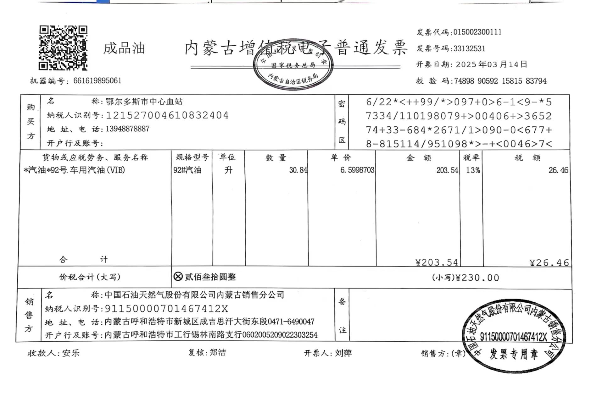 供应商(乙方):中国石油天然气股份有限公司内蒙古销售分公司