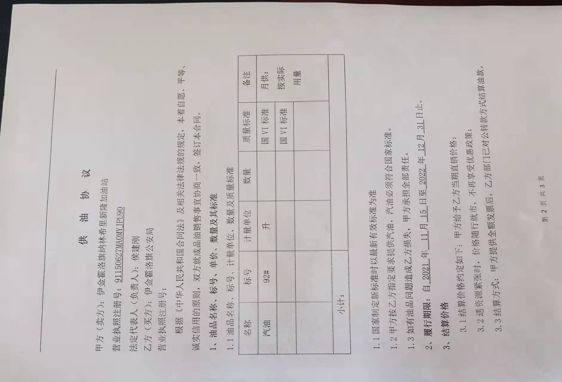 供应商(乙方):伊金霍洛旗志军鑫源加油站