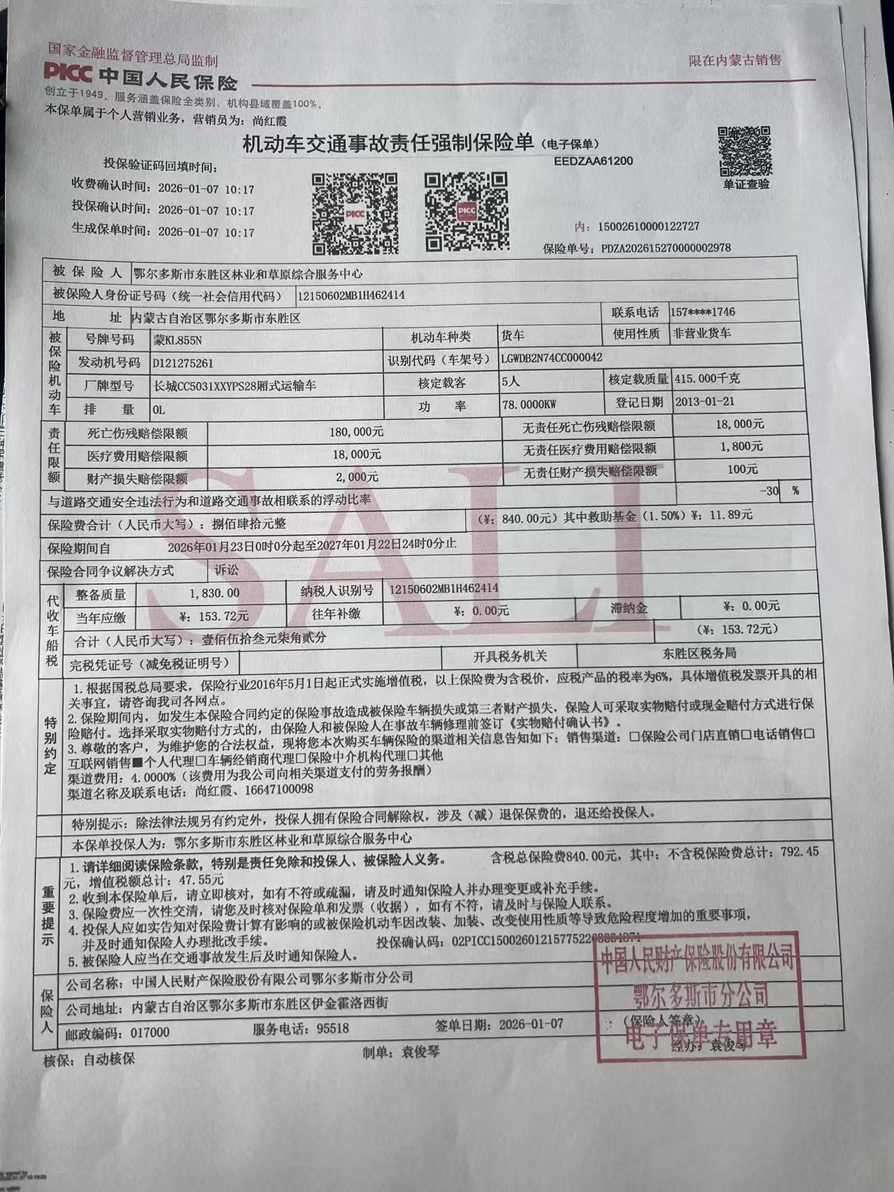 供应商(乙方):中国人民财产保险股份有限公司鄂尔多斯市分公司