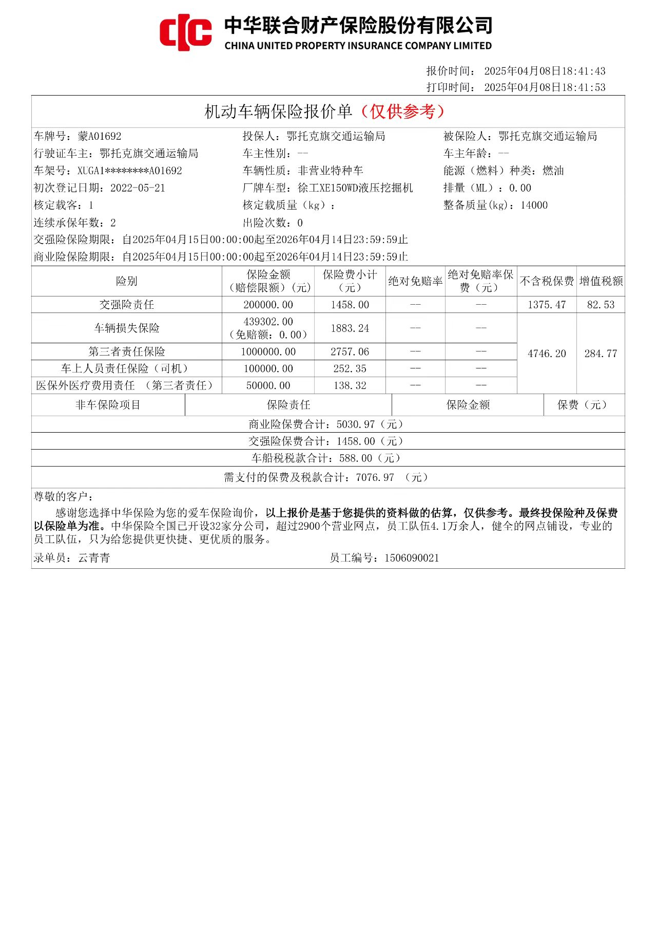 供应商(乙方):中华联合财产保险股份有限公司鄂尔多斯中心支公司