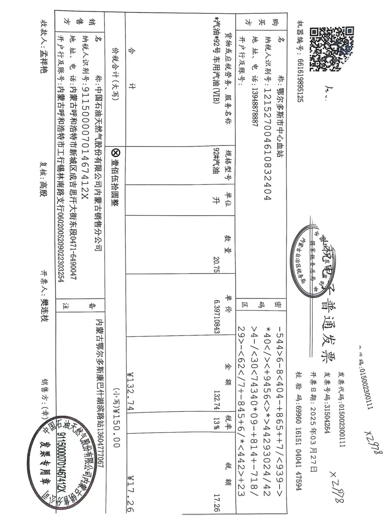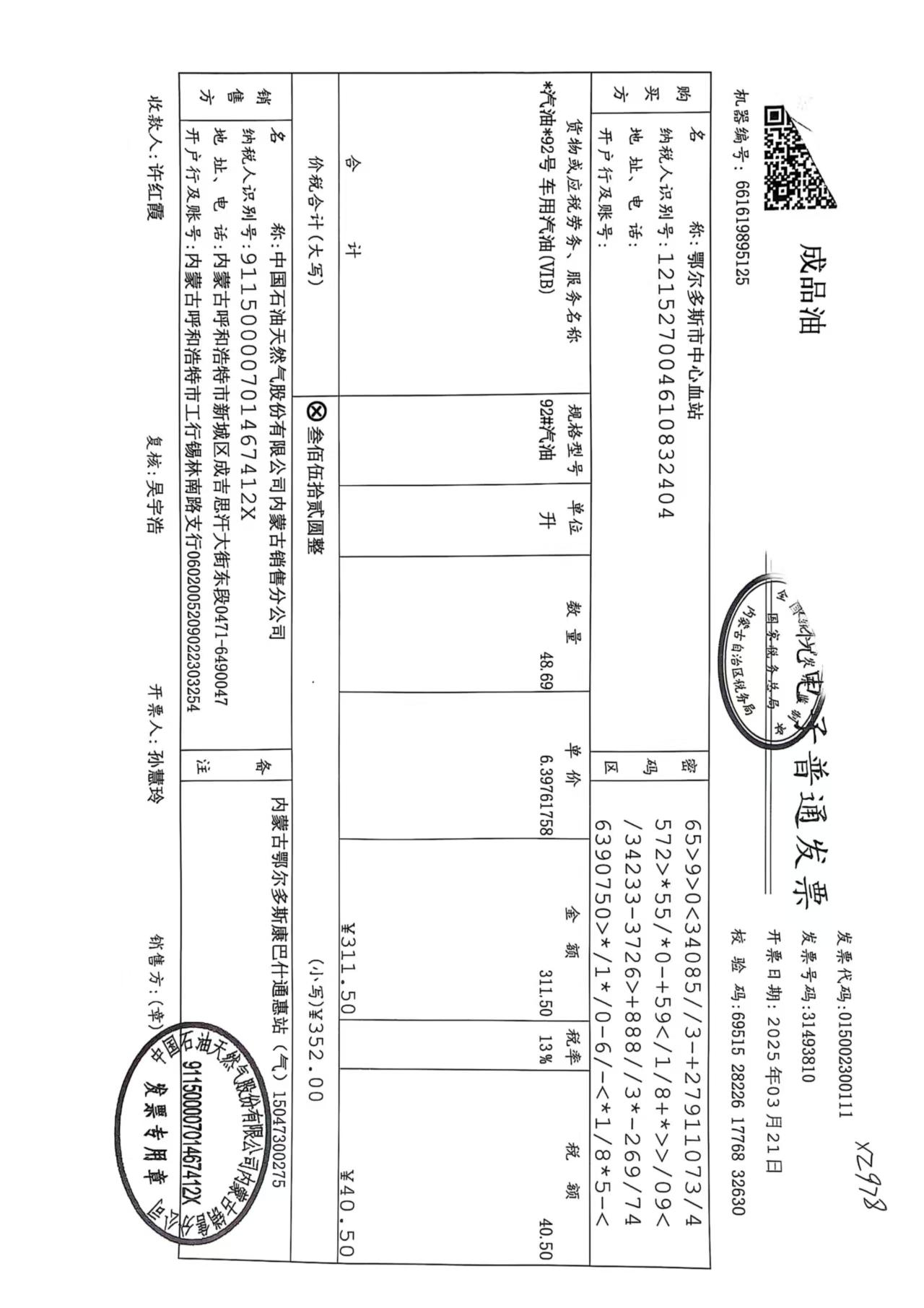 二、合同名称:鄂尔多斯市中心血站车辆三月用油