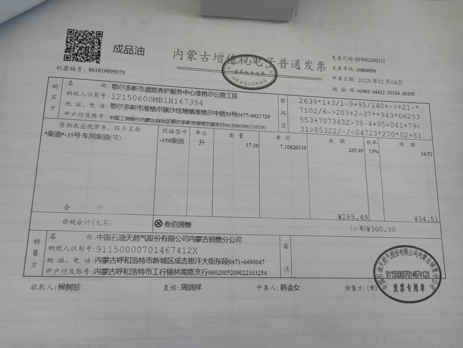 采购人(甲方):鄂尔多斯市道路养护服务中心准格尔公路工区