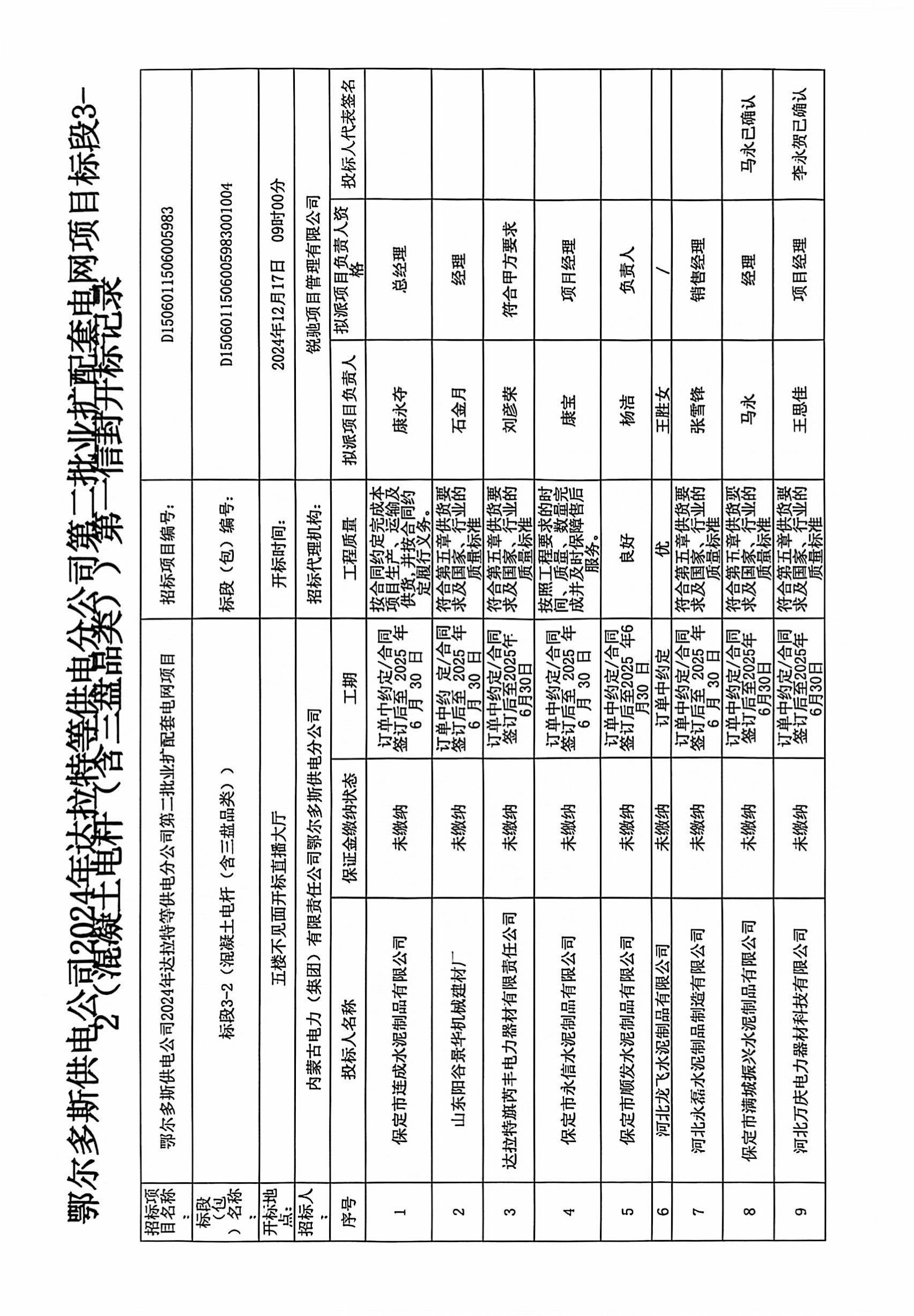 鄂尔多斯供电公司2024年达拉特等供电分公司第二批业扩配套电网项目标段3-2(混凝土电杆(含三盘品类))中标候选人公示 |