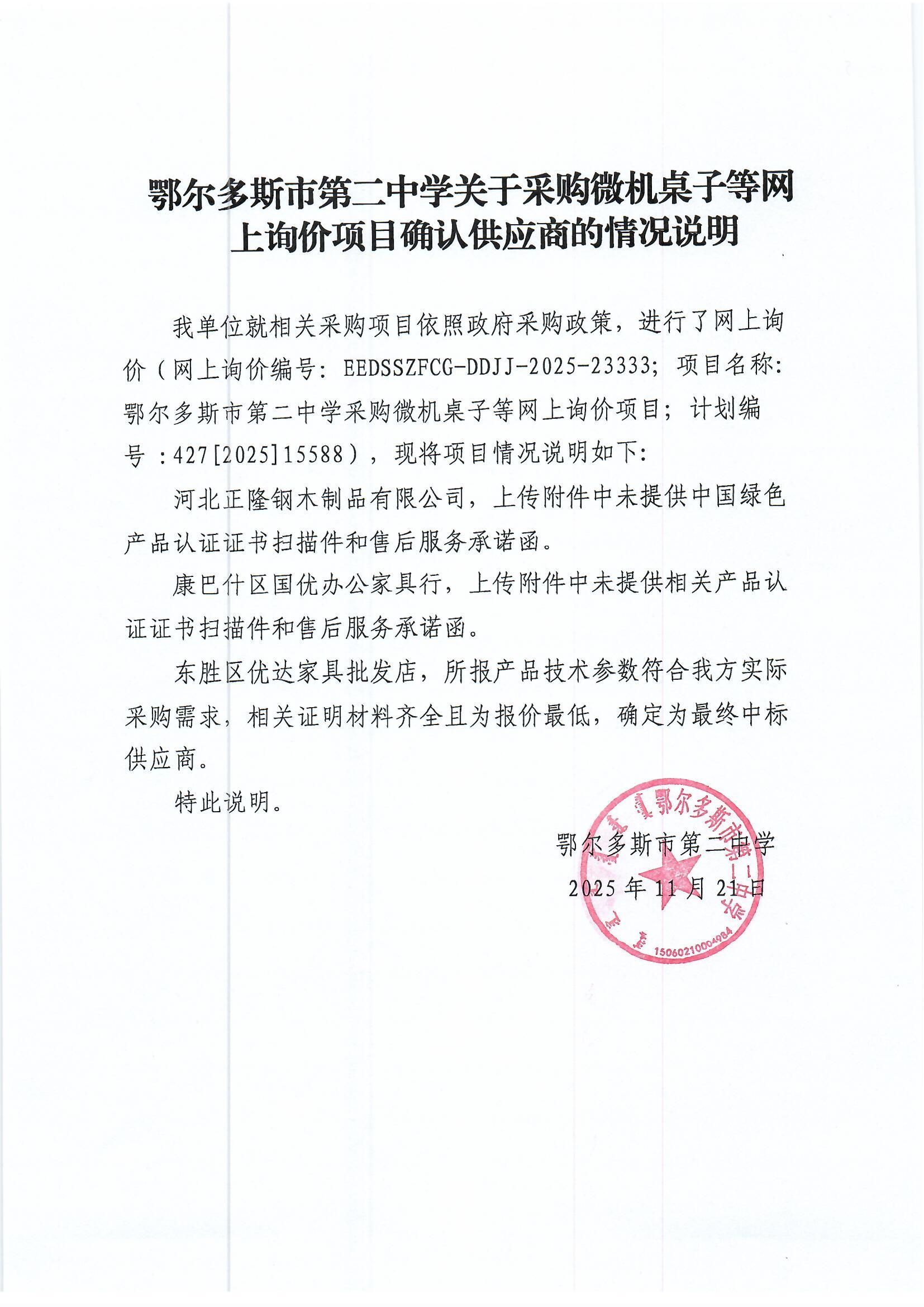 项目名称:鄂尔多斯市第二中学采购微机桌子等网上询价项目