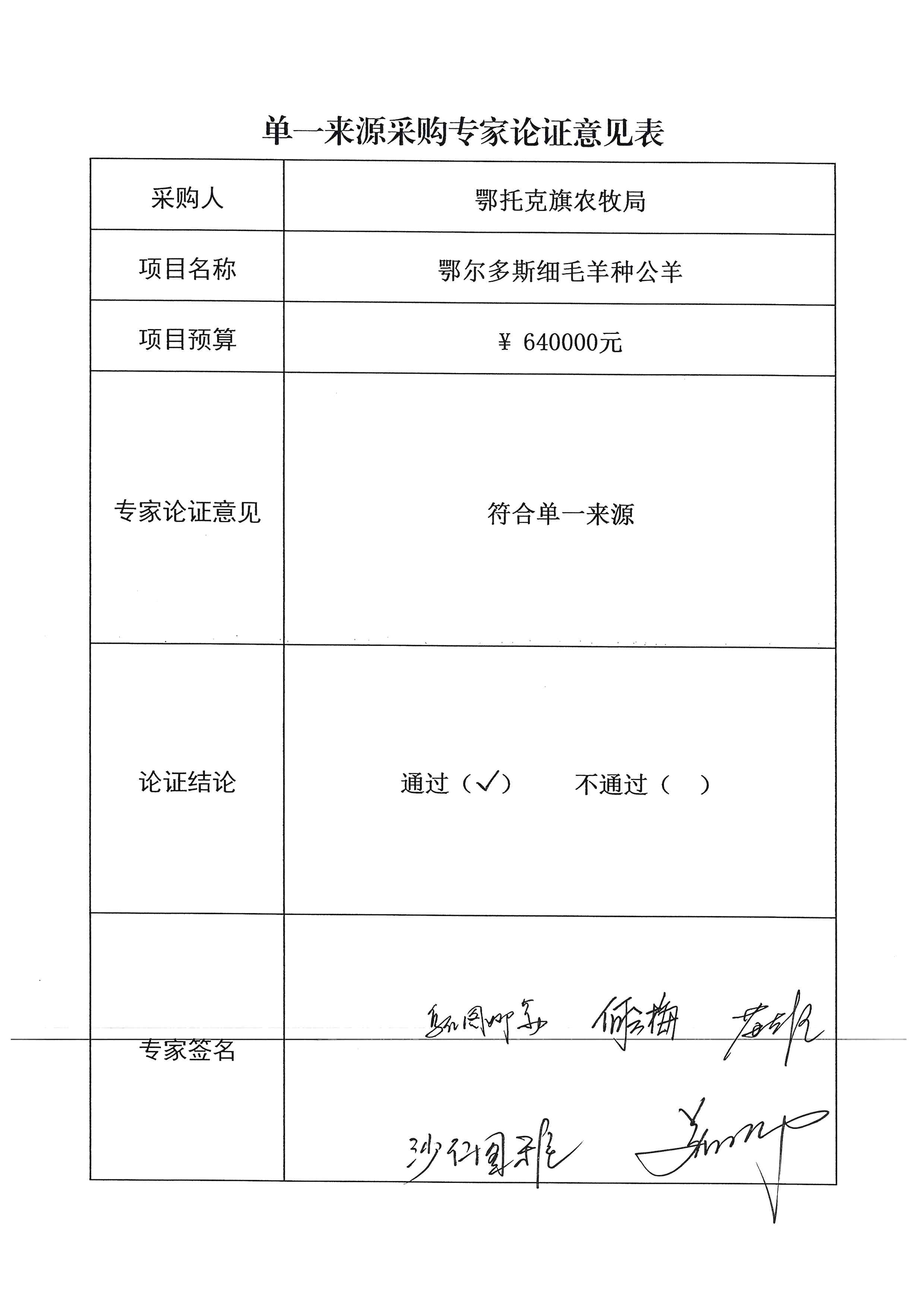 鄂尔多斯细毛羊为鄂尔多斯市特有畜种,供种来源单一,专业性强,故申请单一来源采购种公羊,乌审旗青青草原农牧业开发有限公司种羊标准符合参数要求。