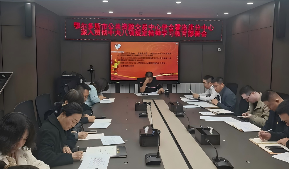 会议集中传达学习了中央、自治区党委、市委及市交易中心关于落实中央八项规定精神的最新部署要求,系统解读了中央八项规定及其实施细则的核心要义,并印发《分中心深入贯彻落实中央八项规定精神学习教育工作安排》,从"学、查、改、效"四个维度作出具体部署。