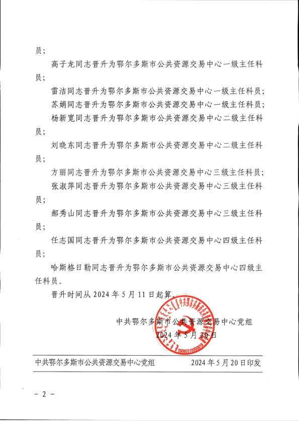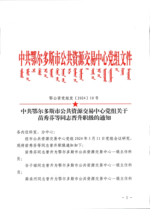 中共鄂尔多斯市公共资源交易中心党组关于苗秀芬等同志晋升职级的通知