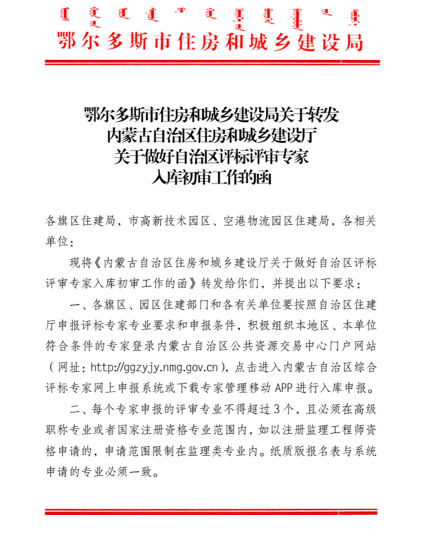 内蒙古自治区住房和城乡建设厅关于做好自治区评标评审专家入库初审工作的函.pdf