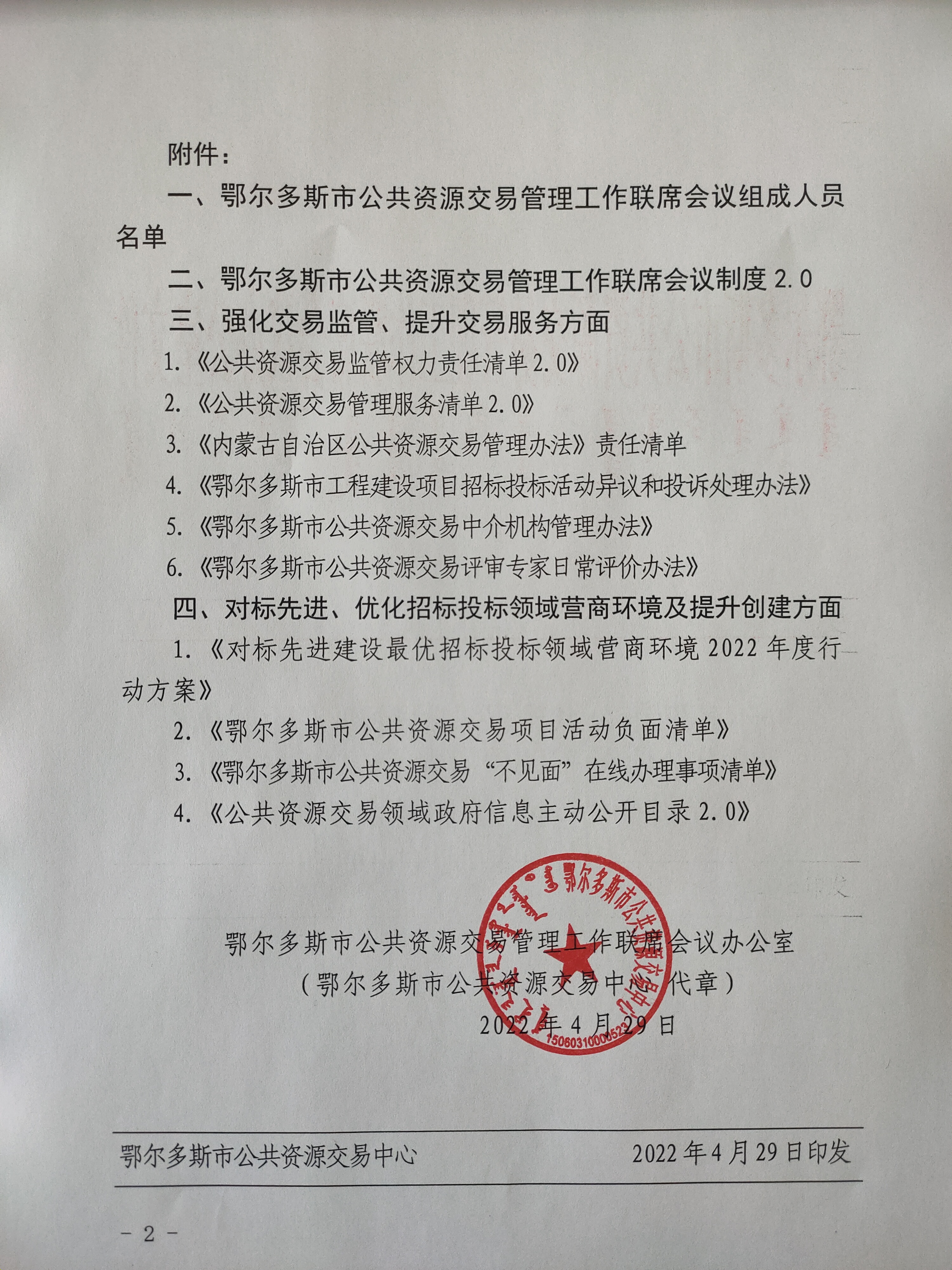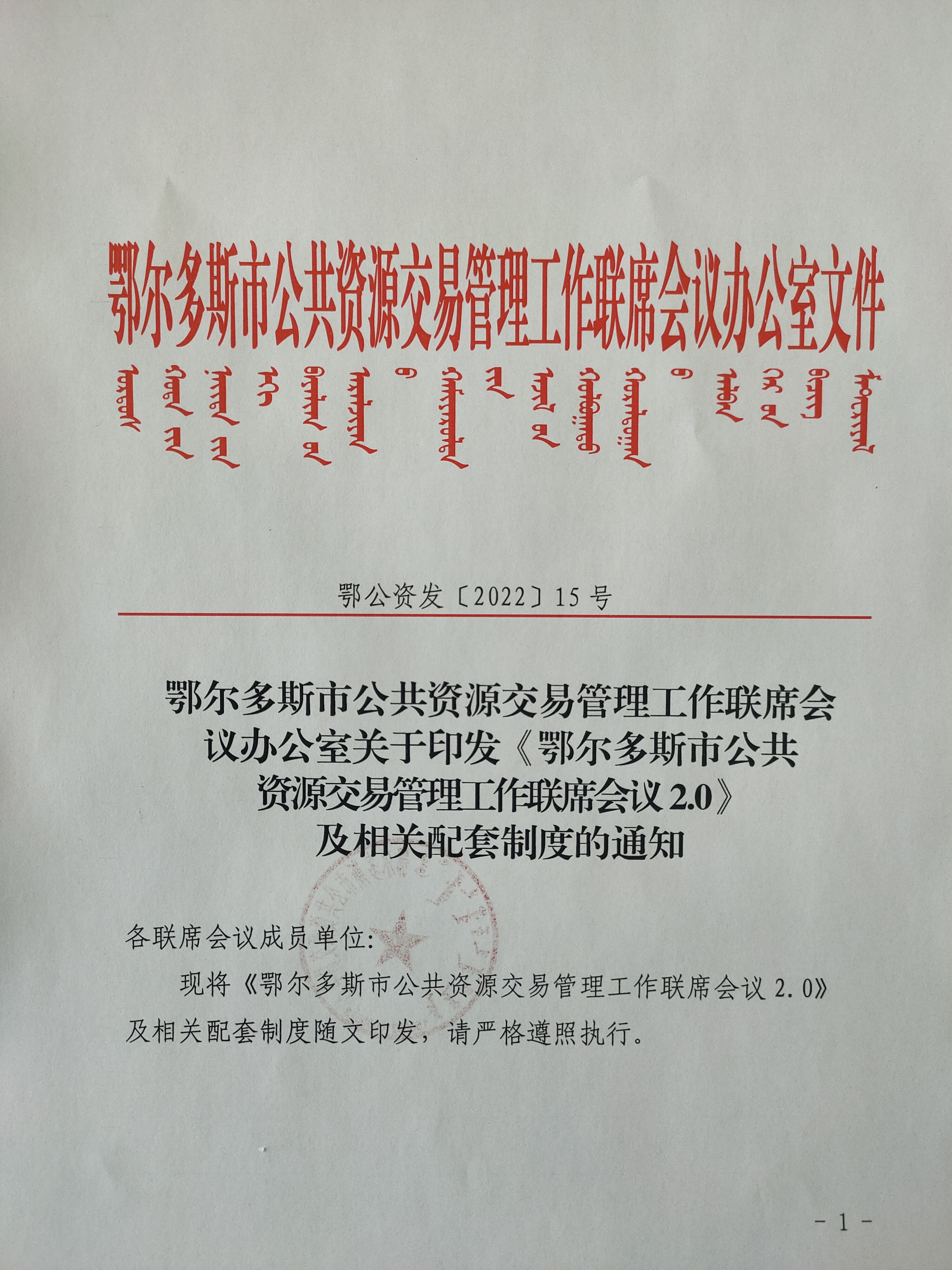 鄂尔多斯市公共资源交易管理工作联席会议办公室关于印发《鄂尔多斯市公共资源交易管理工作联席会议2.0》及相关配套制度的通知