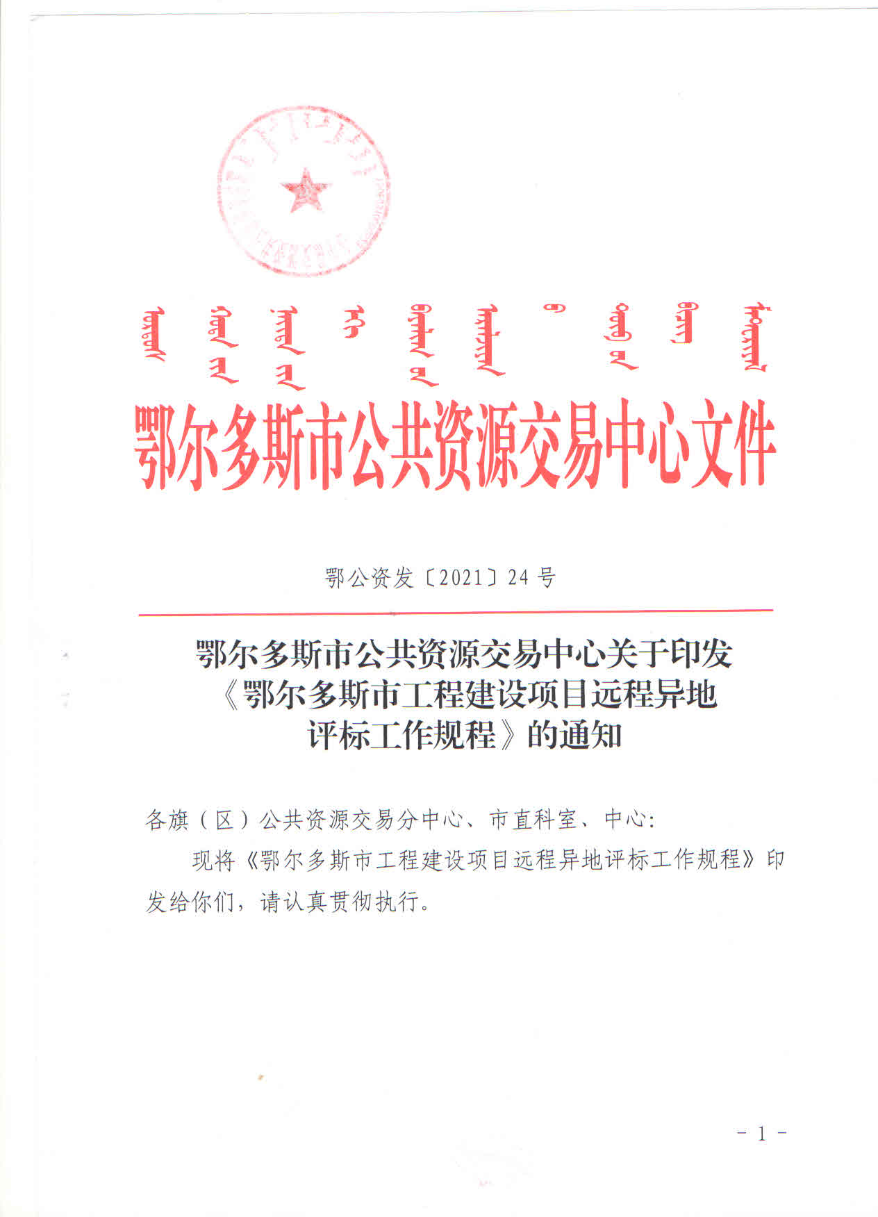 鄂尔多斯市公共资源交易中心关于印发《鄂尔多斯市工程建设项目远程异地评标工作规程》的通知
