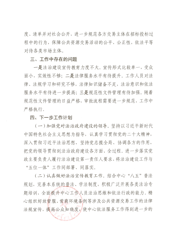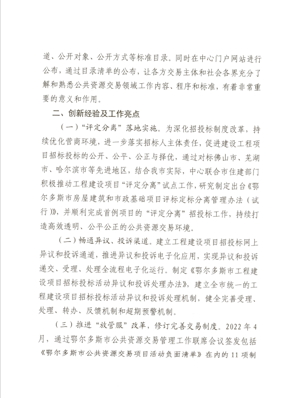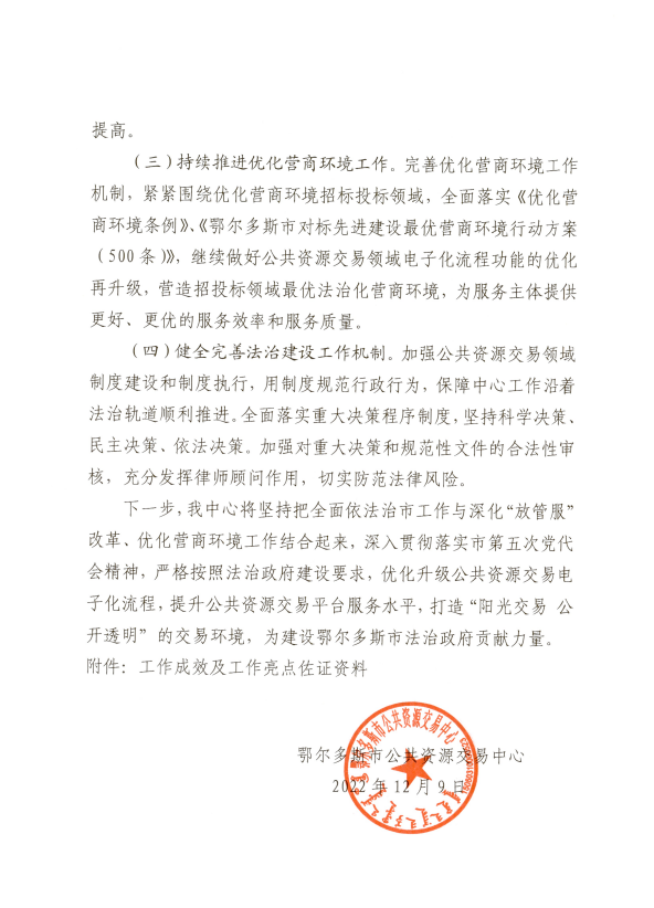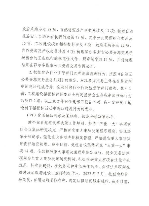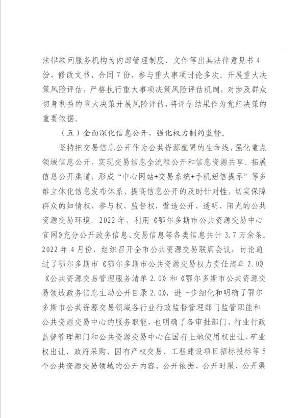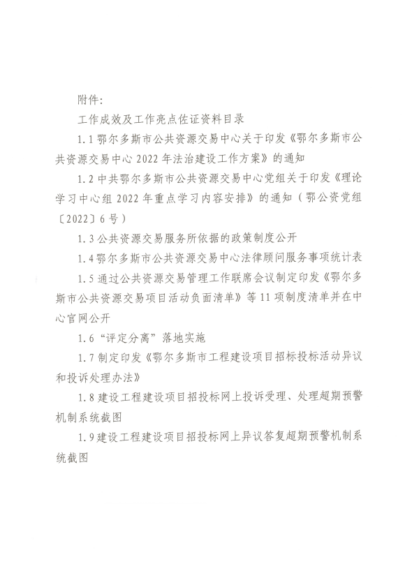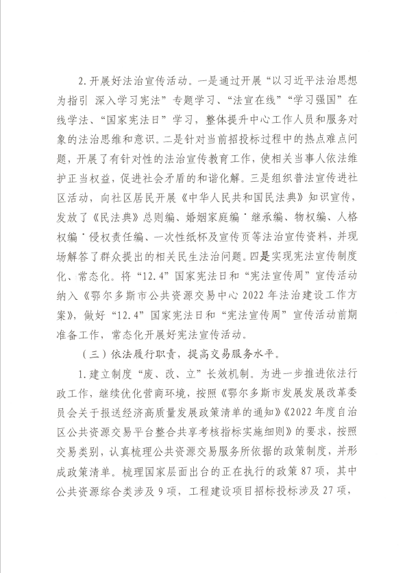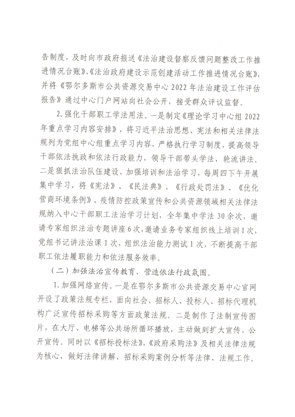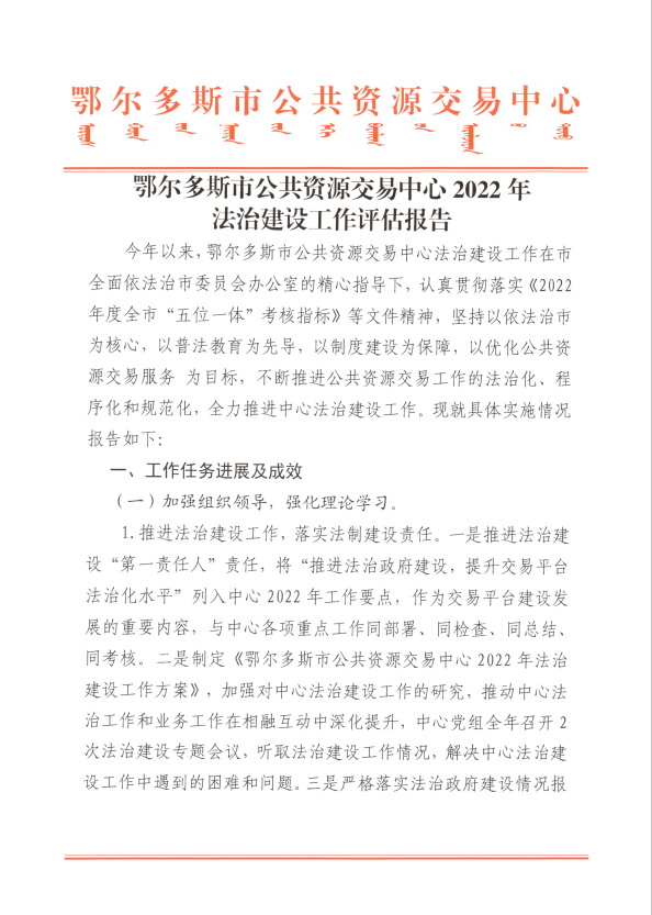 鄂尔多斯市公共资源交易中心2022年法治建设工作评估报告