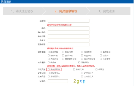 进入主体单位注册页面,填写注册基本信息,选择产权交易:意向受让方