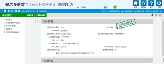 填写基本信息,上传相关资料,提交验证,系统将自动显示为验证通过。