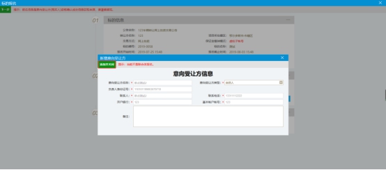 2、点击 ,填写受让方信息,添加并关闭即可,“风险告知和应急方案”需仔细阅读;