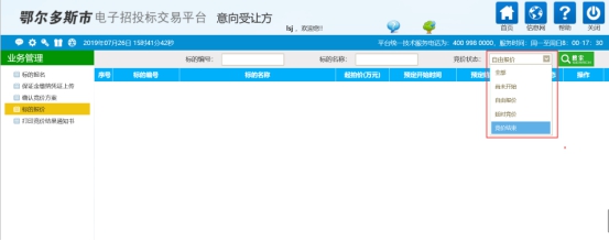 如提前进入系统或者看不到要竞价标的时,可查看选择竞价状态
