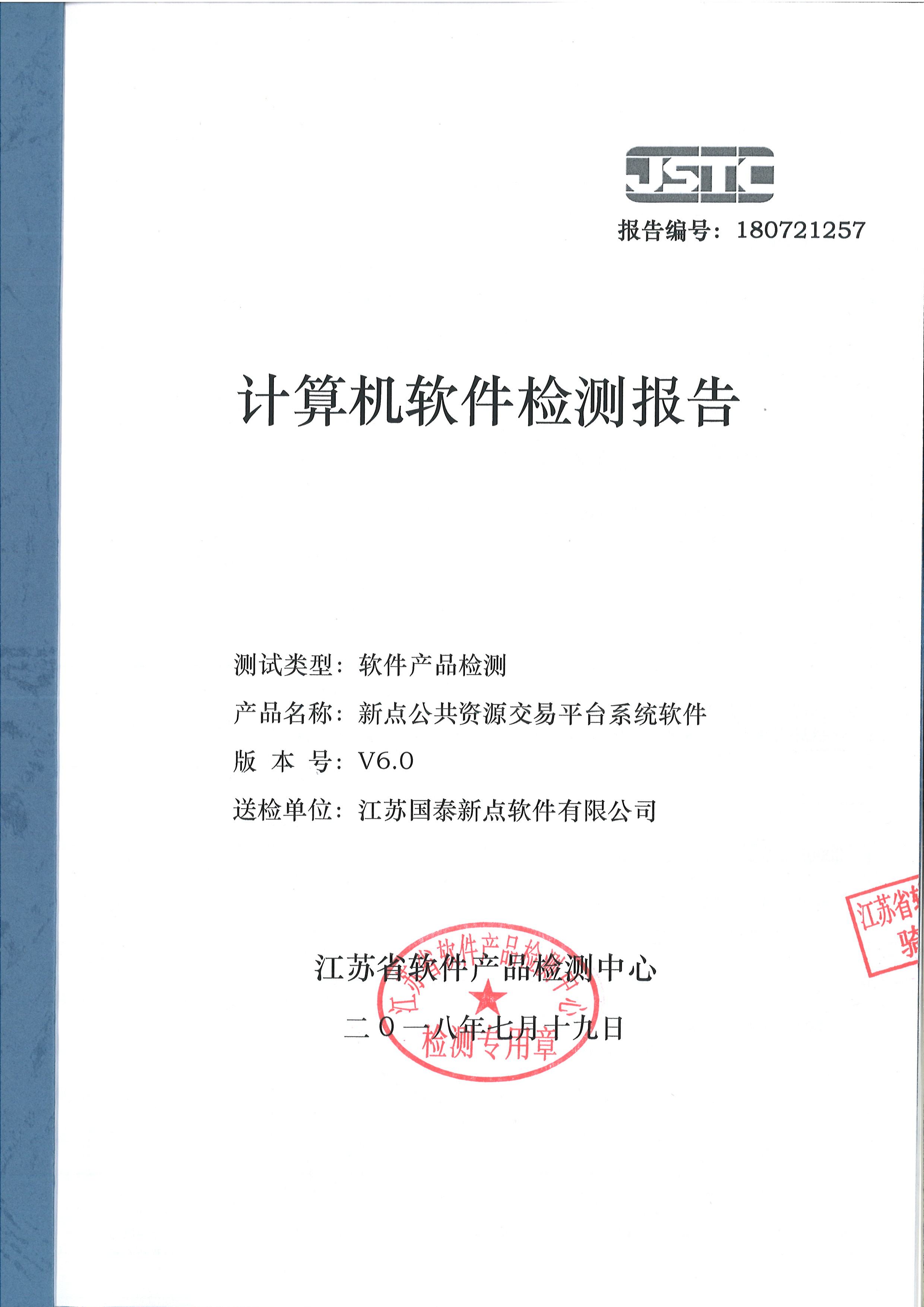 的软件产品监测报告;认证标志包括国泰新点软件股份有限公司的信息技术服务管理体系认证证书、信息安全管理体系认证证书、质量管理体系认证证书。具体证书内容详见以下图片: