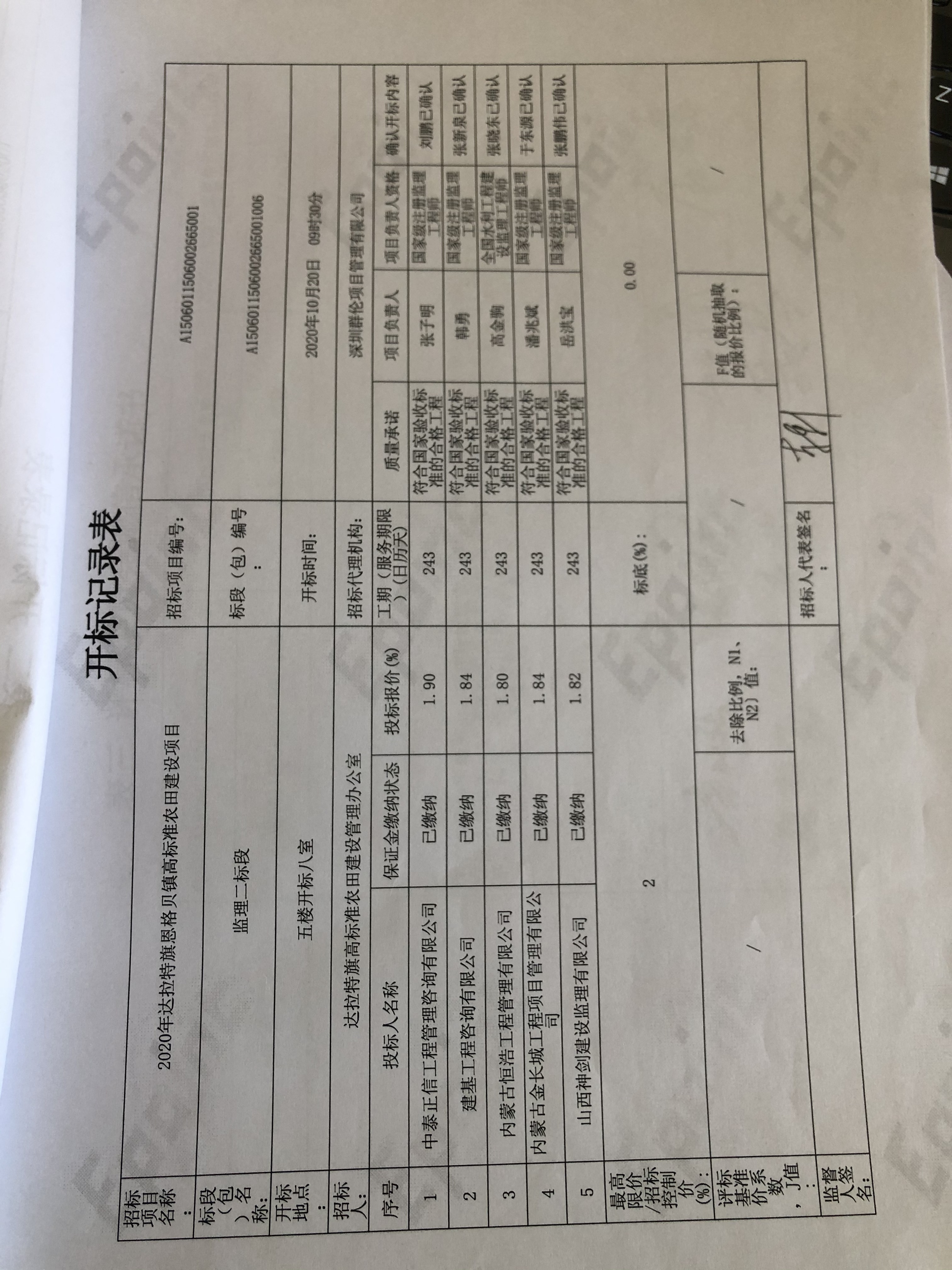 2020年达拉特旗恩格贝镇高标准农田建设项目监理二标段中标候选人公示 |