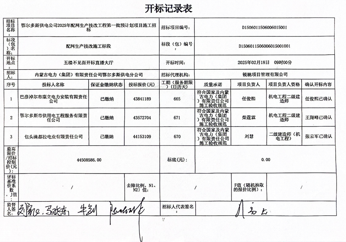 鄂尔多斯供电公司2025年配网生产技改工程第一批预计划项目施工招标配网生产技改施工标段中标候选人公示 |