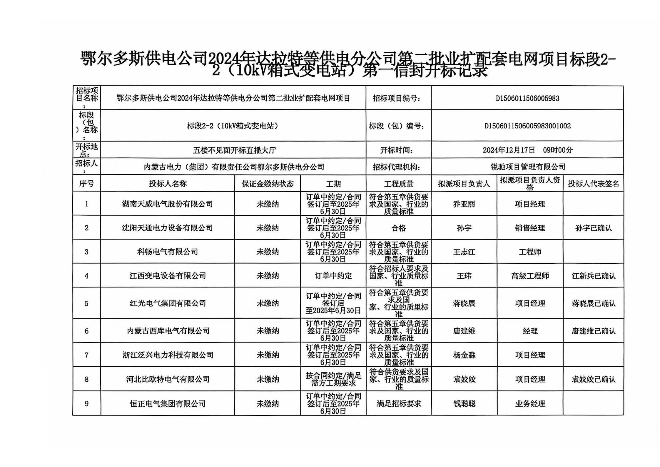鄂尔多斯供电公司2024年达拉特等供电分公司第二批业扩配套电网项目标段2-2(10kV箱式变电站)中标候选人公示 |