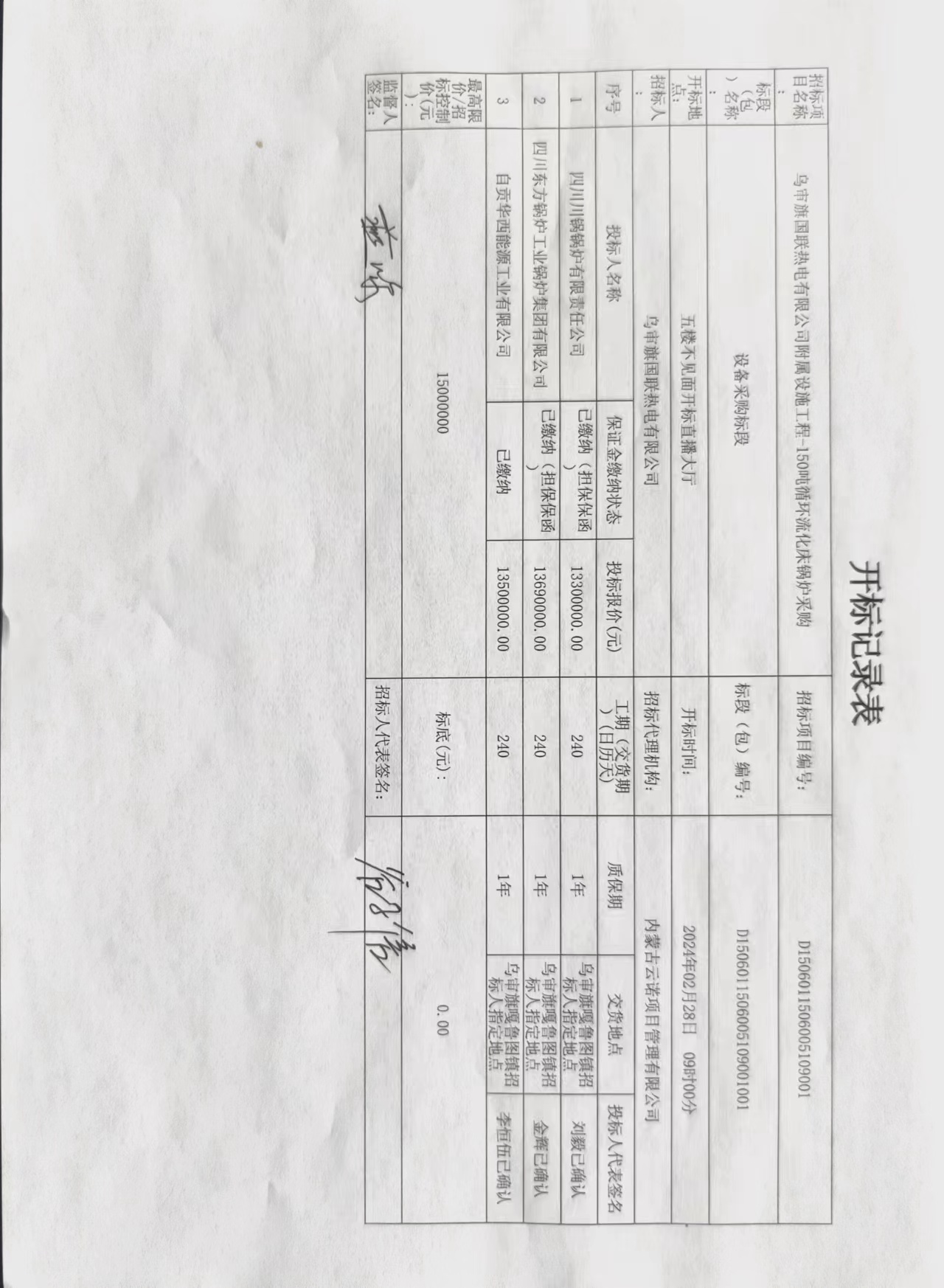 招标项目名称 | 乌审旗国联热电有限公司附属设施工程-150吨循环流化床锅炉采购 |