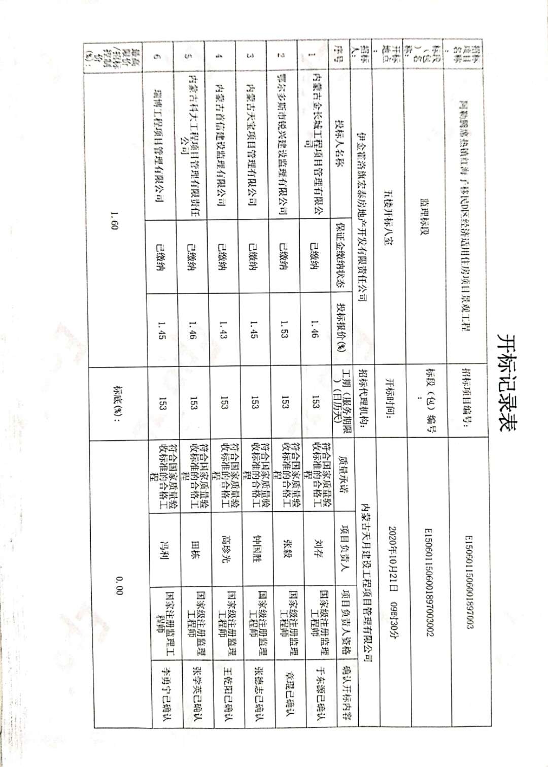 投标人业绩 | 1、项目名称:杭锦旗锡尼镇校园周边 3 处停车场建设项目,发包人名称:杭锦旗城市管理行政执法局,合同价格:1.5%,开工日期 2017 年 6 月 1 日,竣工日期 2017 年 7 月 15 日。