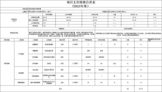 3.政府采购技术服务费项目自评综述:根据年初设定的绩效目标,项目自评得分99.93分,扣分原因是预算执行率未达100%。全年预算数为200万元,执行数为198.55万元,完成预算的99.28%。项目绩效目标完成情况:本项目是针对公共资源交易系统运行维护项目。本年度系统维护服务工作已完成,公共资源交易系统及网站运行正常,未出现交易系统故障等情况。项目绩效完成情况:1、数量指标。1)系统日常维护,目标值大于等于3次,实际完成3次,分值 13,得分13。2、质量指标。2)系统运维正常,目标值正常,实际完成正常,分值13,得分13。3、时效指标。3)实时系统运行维护,目标值及时有效,实际完成及时有效,分值12,得分12。发现的主要问题及原因:需进一步提高解决系统运行过程中出现的问题的效率下一步改进措施:系统运行过程中出现的问题能够及时进行解决,确保交易系统的正常运行;服务对象范围主要包括鄂尔多斯市本级及所辖8个旗县区(东胜区、伊金霍洛旗、准格尔旗、达拉特旗、杭锦旗、乌审旗、鄂托克旗、鄂托克前旗)及各招投标主体。