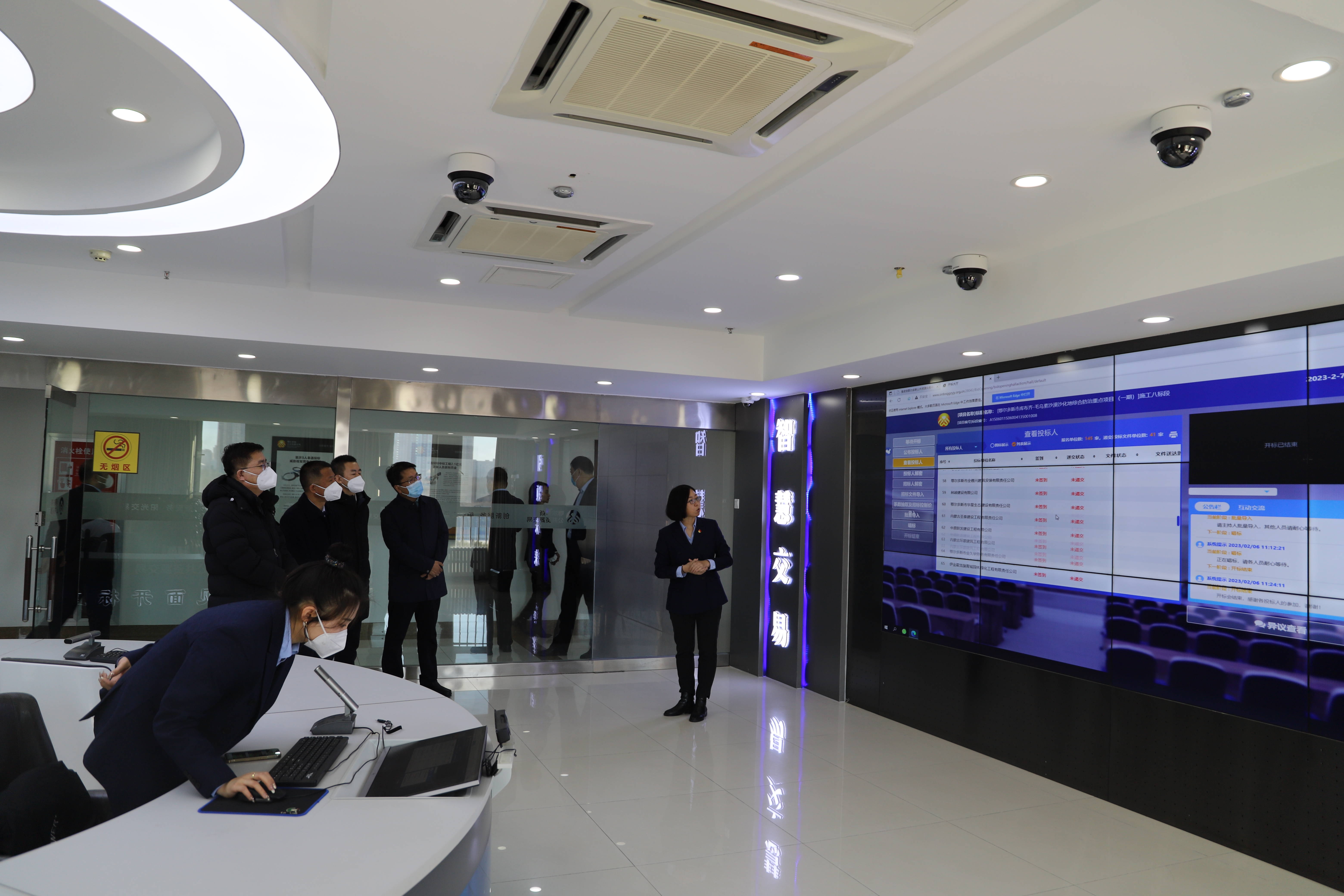 考察团还参观了电子见证室,在讲解员的介绍和演示下可以看到,开评标过程中,工作人员可通过数字见证系统随时对异常情况进行见证记录,有效规避与评委接触的隐患。