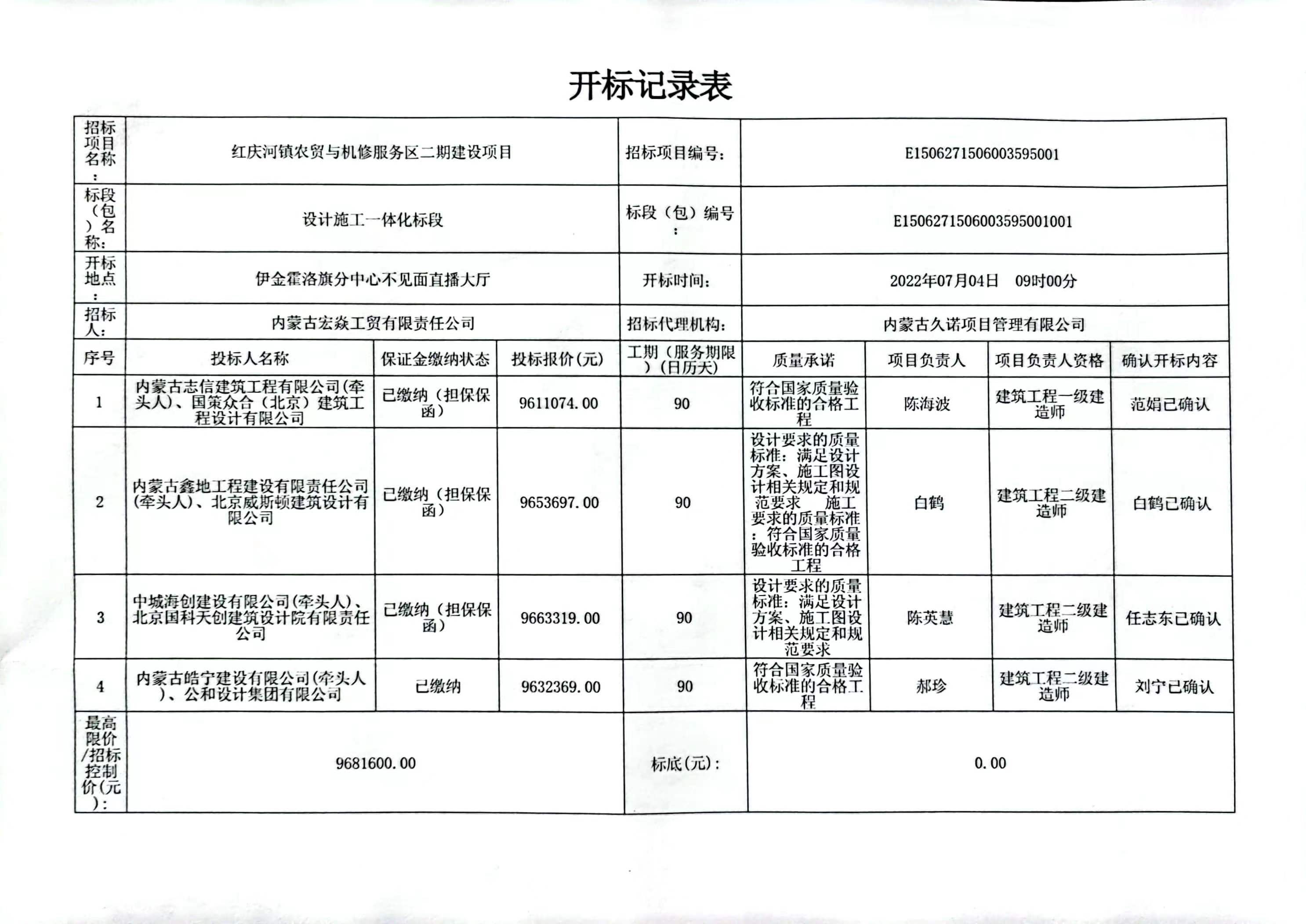 投标人名称 | 内蒙古志信建筑工程有限公司(牵头人)、国策众合(北京)建筑工程设计有限公司 |