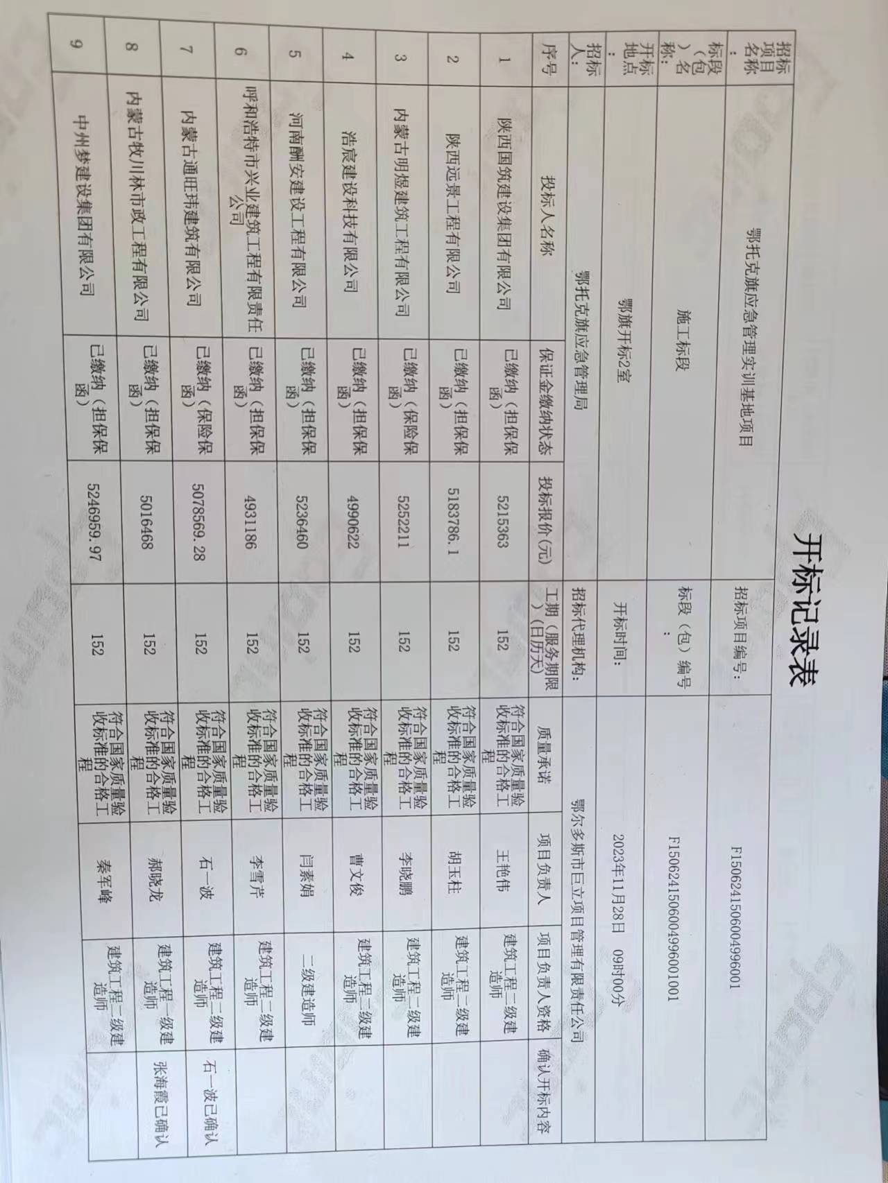 鄂托克旗应急管理实训基地项目施工标段定标候选人公示(评定分离)