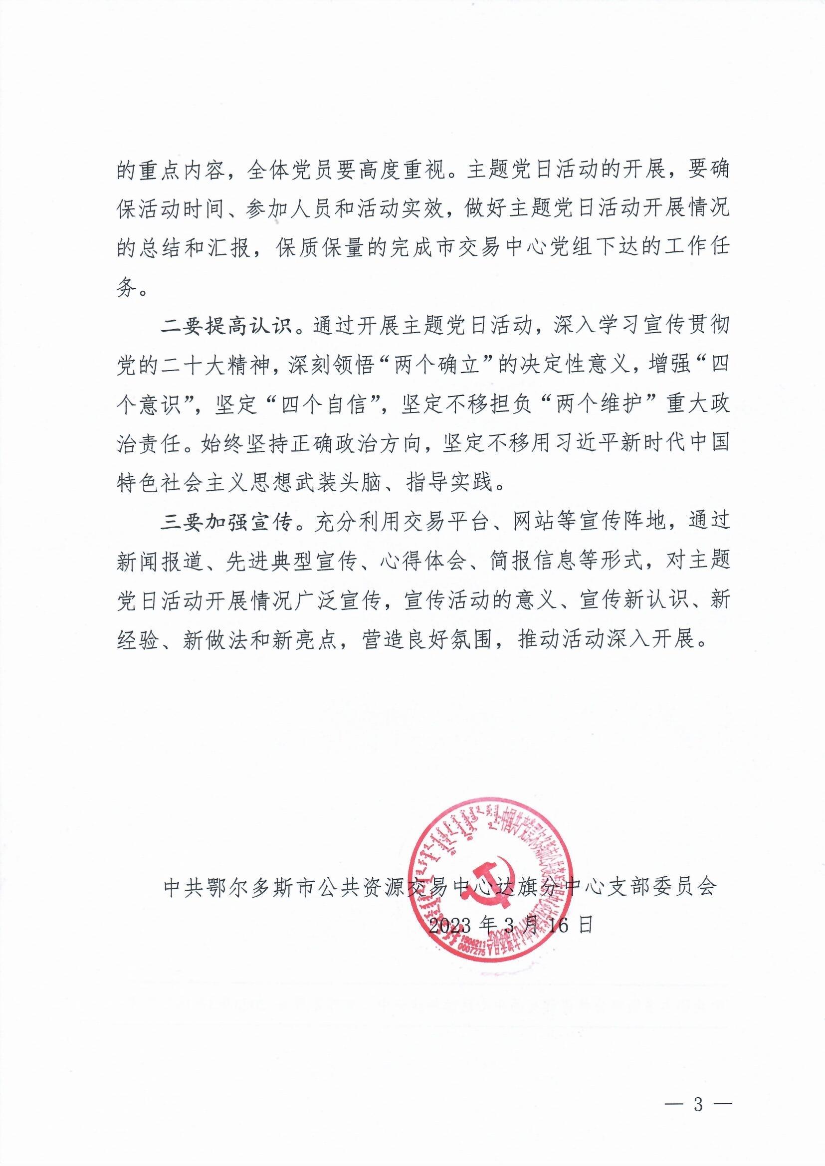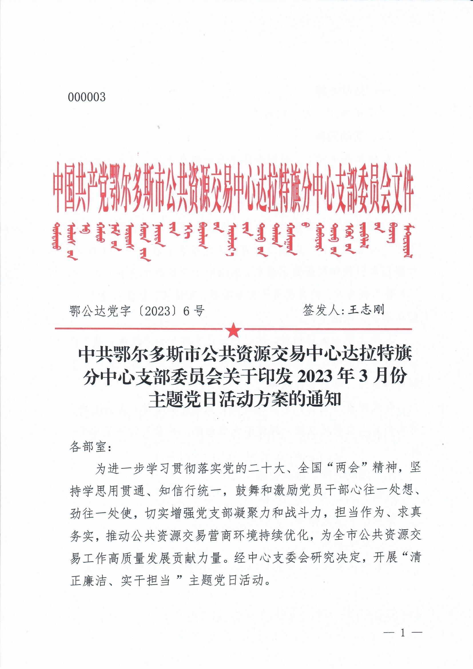 中共鄂尔多斯市公共资源交易中心达旗分中心支部委员会2023年3月份主题党日活动