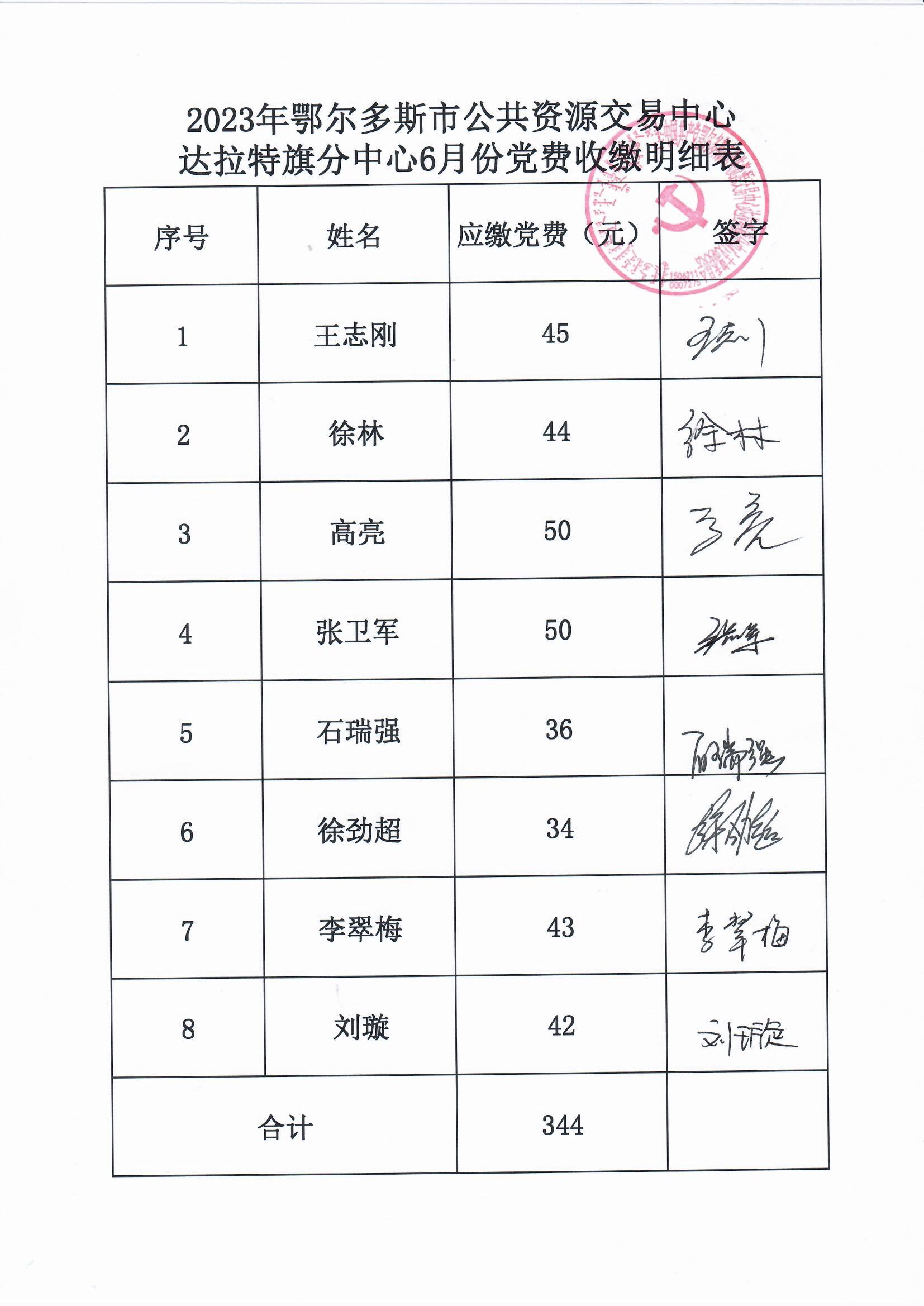 2023年鄂尔多斯市公共资源交易中心达拉特旗分中心6月份党费