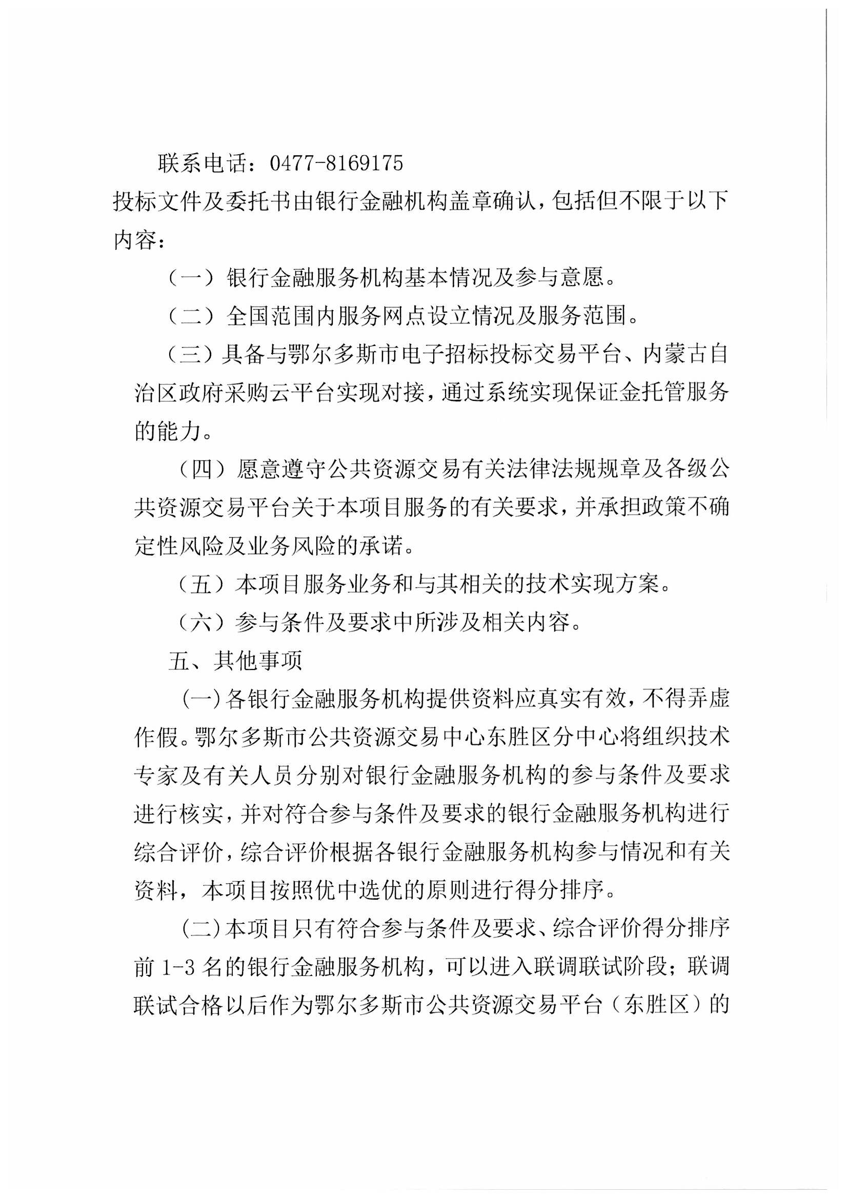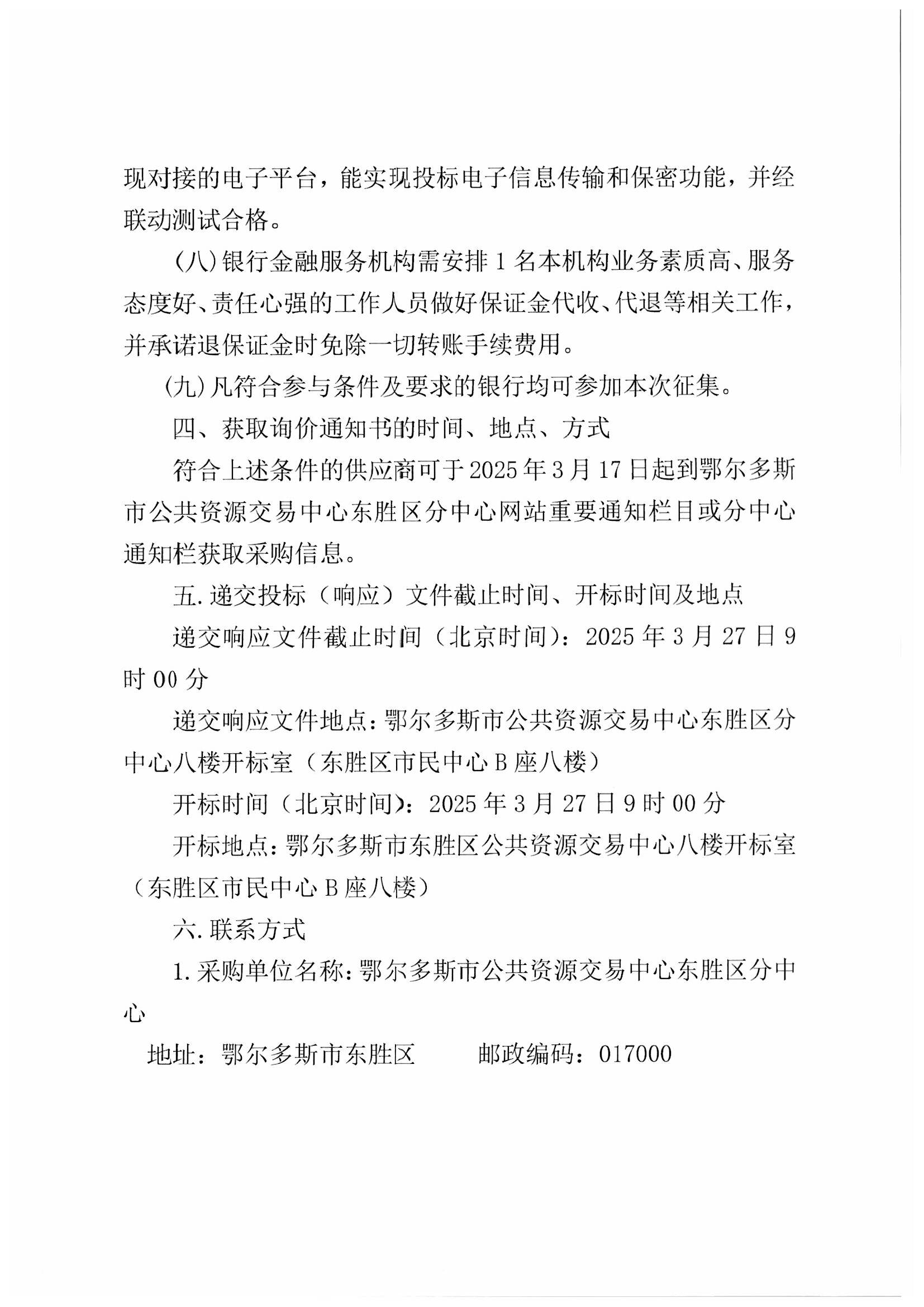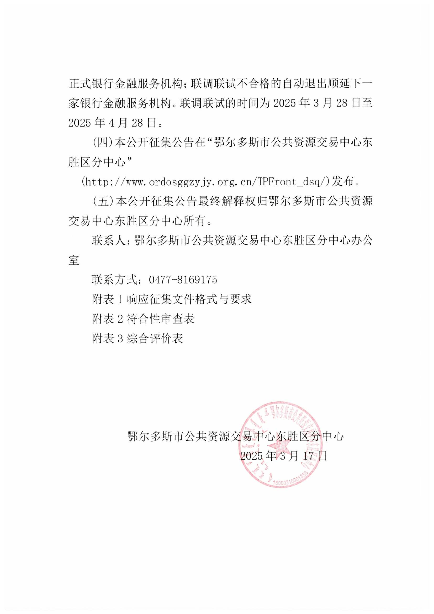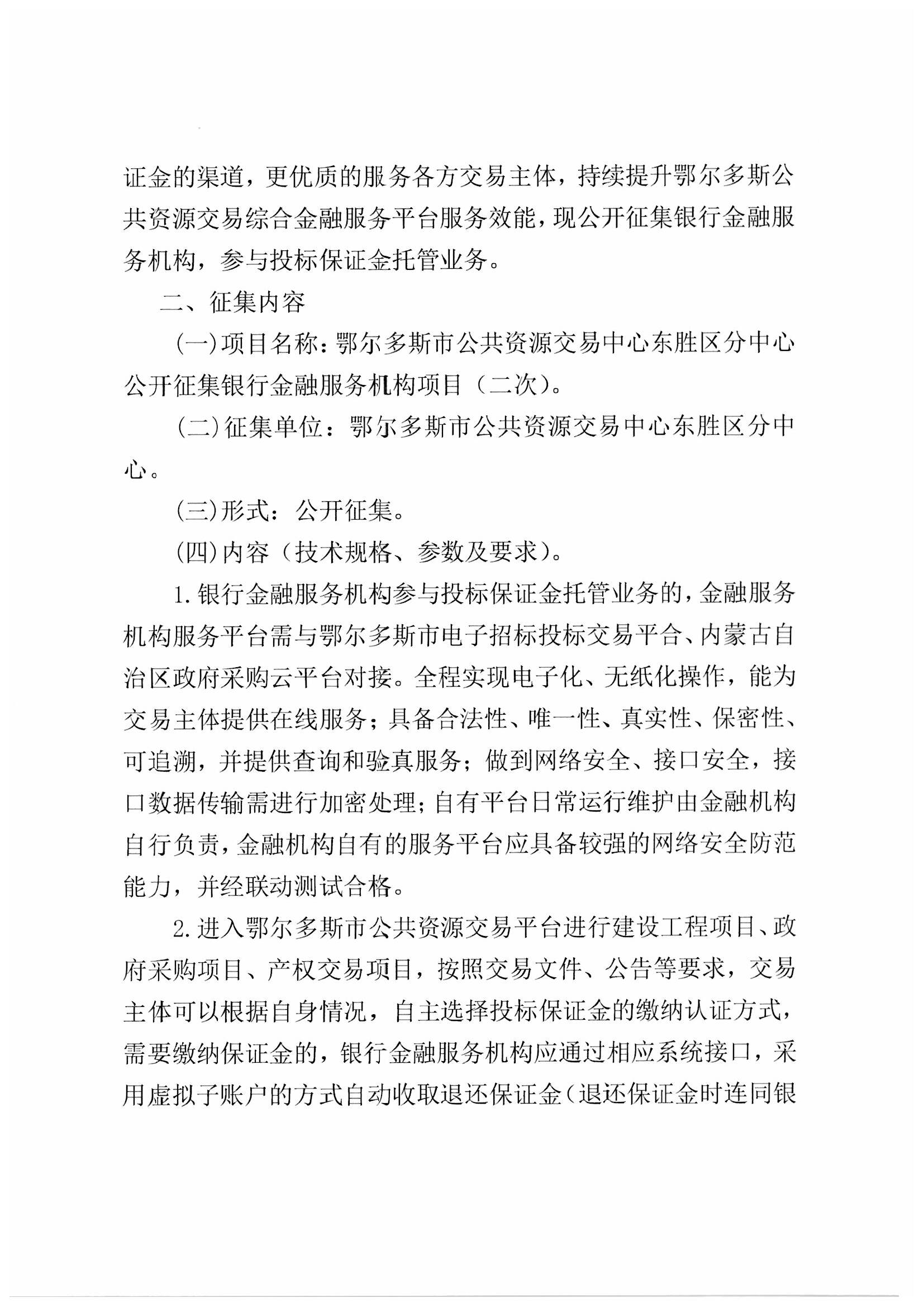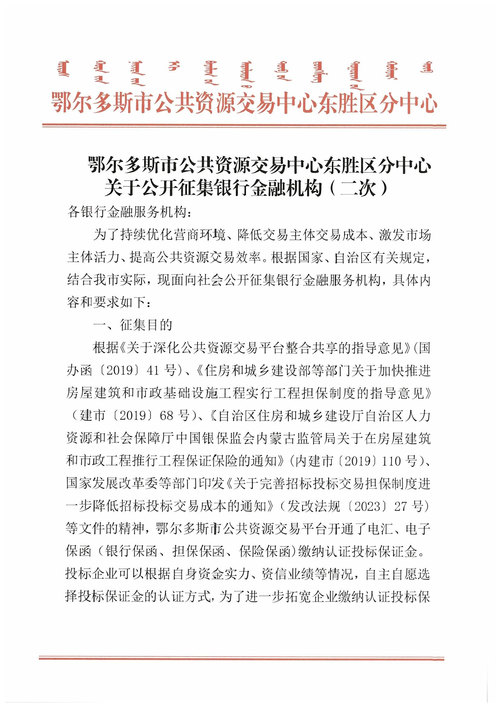 鄂尔多斯市公共资源交易中心东胜区分中心关于公开征集银行金融机构(二次)
