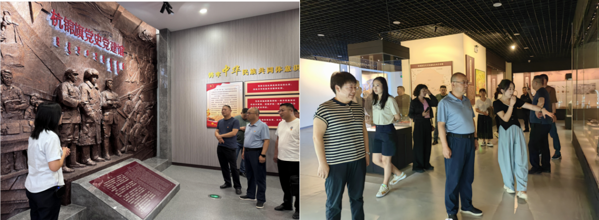 一、红色教育悟初心,感怀历史担当。下午、全体党员干部参观了杭锦旗党史党建馆、杭锦旗博物馆,全体人员重温了各民族交往交流交融的历史渊源,感悟中华民族多元一体的格局,更加身临其境地感受到了铸牢中华民族共同体意识的深邃内涵,地一步深化了对加强和改进民族工作、铸牢中华民族共同体意识的认识。参观过程中,全体党员干部在鲜红的党旗下重温入党誓词,切实增强了党员的荣誉感、使命感。