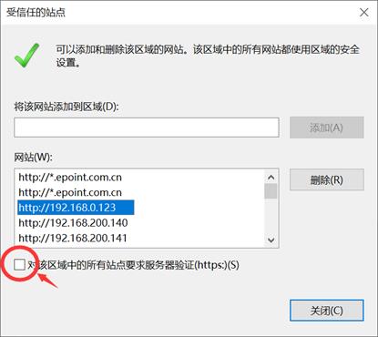 输入系统服务器的IP地址,格式例如:192.168.0.123,然后点击“添加”按钮完成添加,再按“关闭”按钮退出。