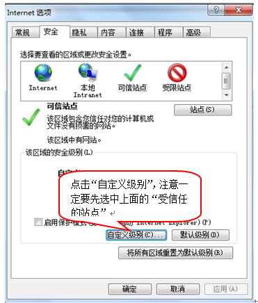 3、点击绿色的“受信任的站点”的图片,会看到如下图所示的界面:
