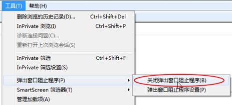 上述操作完成后,如果系统中某些功能仍不能使用,请将拦截工具关闭再试用。比如在windows工具栏中关闭弹出窗口阻止程序的操作: