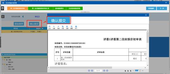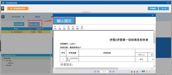 前置条件:所有评委完成第一信封商务初步评审并确认提交评审结果