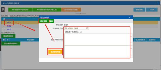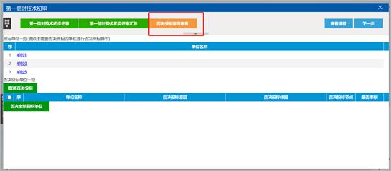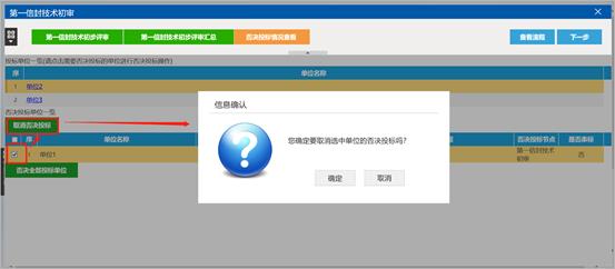 基本功能:评委组长对有特殊情况的单位进行否决投标处理