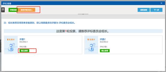 1、点击“推荐评委负责人”子菜单,在下方的页面中能够查看到评标委员会成员的信息,点击信息下方的“确认推荐”按钮,推荐评委主任,以少数服从多数的原则系统会自动确定评委主任,也可选择自己。如下图: