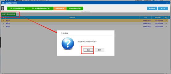 3、若修改后需要恢复投标单位投标文件中原报价,点击“重新生成标价比较表”,恢复所有单位评审价格为最初报价。如下图: