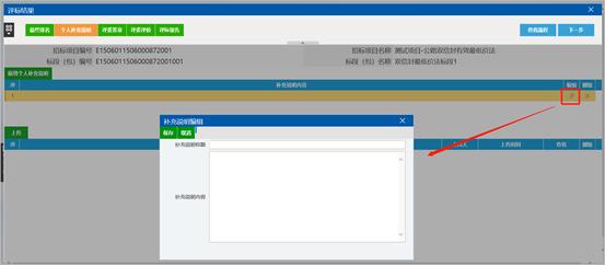 2、点击新增的补充说明行后方的“编辑”按钮,编辑补充说明标题及内容,编辑完成,点击“保存”。如下图: