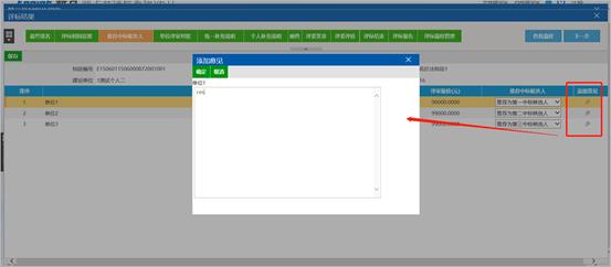 2、点击单位后面的“添加意见”按钮,针对单位进行意见的添加,添加完成之后点击“确定”按钮。如下图: