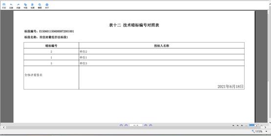 3、点击“查看暗标编号”,可查看各投标单位的暗标编号。如下图: