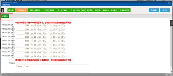 2、设置评标起止时间、评标地点、评标所用时间和原件递交地点,设置完成点击“修改保存”。如下图: