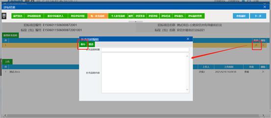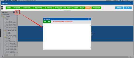 3、点击“异常情况”按钮,填写异常情况内容,点击“保存”按钮可记录评标过程中的异常情况。如下图: