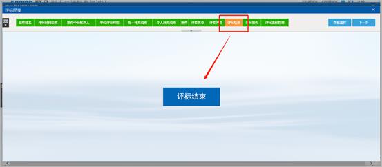 1、点击“评标结束”子菜单,在页面点击“评标结束”按钮结束评标。