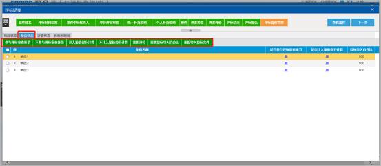 3、点击“单位状态”按钮,勾选单位设置是否参与评标审查环节、是否计入报价得分计算或重置评分等。如下图: